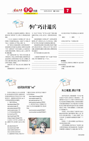 英语中在描述过去发生的事情时,动词是要发生变形的,也就是我们所说的动词的过去式和过去分词。在规则变化中,一般就是在动词后加上ed,今天我们就来看看该如何接吧。 1. 一般在词尾加ed。 help-helped-helped 帮助 look-looked-looked 看 plant-planted-planted 种植 work-worked-worked 工作 2. 以不发音e结尾的词加d。 live-lived-lived 居住 hope-hoped-hoped 希望 change-changed-changed 变化 3.名词以元音字母+y结尾时,加ed。以辅音字母+y结尾时,变y为i,再加ed。 play-played-played 玩 stay-stayed-stayed 逗留 study-studied-studied 学习 carry-carried-carried 运送 4. 以重读闭音节结尾,末尾只有一个辅音字母的词,要双写这个辅音字母,然后再加ed。 drop-dropped-dropped 掉落 stop-stopped-stopped 停止 plan-planned-planned 计划 prefer-preferred-preferred 更喜欢 5. 少数双音节动词,尽管重音不在后面,可以双写末尾的辅音字母,然后再加ed。 travel-traveled-traveled(美语)旅行 travel-travelled-travelled(英语)旅行