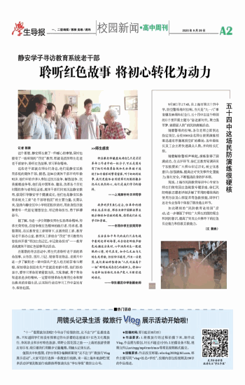 记者 郭漪 这个暑假,静安师生做了一件暖心的事情,同时也接受了一场深刻的“四史”教育,那就是团员师生走进老干部家中,聆听红色故事,学习革命精神。 这些老干部就在师生们身边,他们是静安区教育系统的离休干部。据悉,这86位离休干部平均年龄92岁,他们中的许多人参加过抗日战争、解放战争、抗美援朝战争等,他们是中国革命、建设、改革各个历史时期的参与者和见证者。离休干部们时刻关注静安教育,鼓励引导静安学子健康成长。他们也是静安区教育系统关工委“老干部导航团”的主要力量,长期以来,坚持与静安区中小学校团组织结对,用亲身经历鼓舞青年一代坚定理想信念、牢记使命担当、勇于拼搏奋斗。 据了解,为进一步引领静安师生弘扬革命精神,传承光荣传统,自觉争做红色精神的践行者、传承者,暑假期间,在区教育党工委领导下,区教育团工委、教育局老干部办公室、教育关工委结合“四史”学习教育内容组织开展“寻访红色记忆,牢记使命担当”——教育系统离休干部红色故事寻访活动。 在暑期的寻访活动中,师生代表聆听老干部的革命故事,从书信、图片、日记、勋章等老物品、老照片中进一步了解到老一辈中国共产党人经历的苦难与辉煌,深刻领会到没有共产党就没有新中国。他们纷纷表示,要学习革命前辈爱国为民、无私奉献、勇于革命和追求进步的精神,一定要珍惜革命先辈用生命和鲜血换来的幸福生活,以实际行动在学习工作中奋发有为、报效祖国。 >>师生感言 钟在雍老师谦虚地称自己只是茫茫革命工作者中的一粒沙子,可正是因为有了他们的英勇奋战和无私奉献才造就了如今国家的繁荣富强。听了奶奶的故事,我们更能体会到前辈们为国捐躯赤忱而又热烈的心,他们是我们学习的榜样。 ——上戏附中叶天宇同学 战争的岁月虽已过去,但革命的精神永远在传递,那些为新中国解放事业做出牺牲和贡献的英雄,值得我们永远学习和崇敬。 ——市西中学王欣雨同学 生活在和平年代的我们只在电视中看到这样的场景,而当宿老师绘声绘色地描述出来时,心中油然而生一股敬佩的心情。时代在变,如今已无血与火的生死考验,但信仰不能变,作为一名党员,我们要始终坚持把“人民利益高于一切”鲜明地写在自己的旗帜上,将初心与使命切实转化为共产党人不断前进的动力。 ——华东模范中学张颖老师
