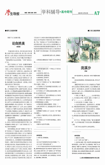 浣溪沙 苏轼 麻叶层层苘叶光,谁家煮茧一村香?隔篱娇语络丝娘。 垂白杖藜抬醉眼,捋青捣麸软饥肠。问言豆叶几时黄? 【注】苏轼任徐州太守时,当地曾发生严重的春旱,他前往石潭求雨,得雨后,又往石潭谢雨,沿途写了一组《浣溪沙》,这是第三首。络丝娘:指缫丝的女子。垂白:老人。捋青捣麸软饥肠:把没有成熟的青麦捣烂充饥。 1.苏轼,字子瞻,号____________。北宋眉州眉山人,北宋著名文学家、书法家、画家。为“唐宋八大家”之一,____________派主要代表。 2.对本词分析,不正确的一项是() A.这首词紧扣蚕妇、老叟等农家人,煮茧缫丝、捋取新麦等农家事,凸显了乡村独有的特点。 B.词中虽未用“夏”字直接点明时令,却借助写苘麻、收麦等,间接地交代了时值夏日。 C.上片以一特写镜头写蚕妇,仅“隔篱”一句,便使蚕妇煮茧缫丝时娇语谈笑的情态跃然纸上。 D.下片以一特写镜头写老叟,“垂白杖藜抬醉眼”一句,传神地刻画了其老态龙钟、醉眼朦胧的心理。 3.读了本词,说说写作上的突出特色。 ____________________________________________________________。 参考答案: 1.东坡居士;豪放。 2.D(“心理”应为“肖像”)。 3.这首词以视觉、听觉、嗅觉等方面的感受来描绘乡村夏景。上片的“麻叶”句,诉诸视觉;“谁家”句,诉诸嗅觉;“隔篱”句,诉诸听觉。下片3句也诉诸视觉、听觉等。这样,便使词中蚕妇、老叟等人物形象呼之欲出,具有浮雕感。同时,使苘麻等景物及村民劳作、生活的情景历历在目,给读者以逼真感、画面感。 (上师大附属康城实验学校 程立海)