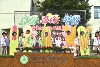 记者 曹莹 9月21日上午,平利路第一小学全体师生举行以“金秋丰收农民喜,勤俭节粮美德传”为主题的庆祝第三届中国农民丰收节活动。 从2018年开始,每年农历秋分就是我国的农民丰收节。平利路第一小学则借丰收节庆诉说光盘与节粮,在“丰收节”到来之际举行主题升旗仪式,让徜徉在幸福生活的甜蜜海洋中的少年儿童,思考衣食无忧的来之不易。 在升旗仪式上,四(3)中队的同学们首先为大家带来小品《粮食家族的聚会》!同学们装扮成可爱的水稻、小麦、玉米、大豆和高粱,介绍常见粮食作物的特点和营养价值,生动有趣的表演,引来台下阵阵掌声。四(4)中队的同学们则带来诗朗诵《水稻之父袁隆平》,深情赞颂了袁隆平不畏艰辛、执着追求、大胆创新、勇攀高峰的职业精神。 食堂阿姨也有悄悄话对大家说!食堂管理员薛阿姨向大家讲述了每顿饭食从厨房到摆上餐桌的一道道工序,让孩子们切实感受到安全而又可口的午餐来之不易。食堂阿姨还为各个中队的小小午餐管理员授牌,而校领导则为“光盘行动小标兵”颁发特制的“光盘”奖状。