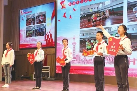 记者 曹莹 摄影报道 为深入学习贯彻落实习近平总书记贺信及第八次全国少代会精神,2020年10月16日下午,“习爷爷的教导记心中 争做新时代好队员”杨浦少先队纪念建队71周年主题活动在打虎山路第一小学举行。本次活动呼应“四史学习”“致敬抗疫”“厉行节俭”等时代热点,通过三个篇章呈现杨浦少先队员学习习近平总书记“贺信”精神及第八次全国少代会精神的实际行动,勉励全区少年儿童牢记习爷爷教导,立志向、修品行、练本领,争做新时代好队员。 知史爱国 血脉相承 在抗疫人员子女的深情朗诵中,纪念大会拉开序幕。市东实验学校、同济初级中学、控江中学附属民办学校、打虎山路第一小学、建设小学的师生联合演绎了情景短剧《领巾学“四史” 争做好少年》。少先队员们通过一次专题学习、一次经典阅读、一次人文行走、一次主题讲演、一次童谣传唱“五个一”行动,在“领巾学‘四史’ 争做好少年”雏鹰争章专项行动中积极开展红领巾“四史”学习教育活动,完成集章任务,争得雏鹰奖章。 厉行节俭 美德相伴 为了响应国家“节约粮食、爱惜粮食”的号召,打虎山路第一小学红领巾社团给大家带来《勤俭节约不浪费、YOUNG浦少年在行动》情景剧。通过生动形象的表演,号召少先队员们牢记习爷爷的教导,切实培养节约习惯,积极营造浪费可耻、节约为荣的氛围,弘扬文明就餐、节约粮食、热爱劳动的新时代少先队员新风尚。 另外,活动当天,市少工委主任、市少先队总辅导员赵国强老师还为全区少先队大队辅导员作了题为《学好少先队光荣历史,贯彻好全国八少精神》的专题讲座。赵老师带领大家回顾了少先队思想发展史、工作推进史、自身建设史,详细解读了少先队的历史逻辑与现实启示,并结合当代少年儿童的特点,指导了少先队的工作思路与工作重点。