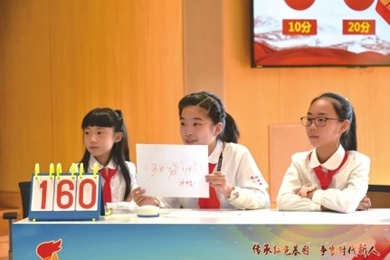 记者 陈思焙 中国共产党召开的具有历史转折意义的是哪次会议?中国少年先锋队于哪一日正式成立?作为新时代的少先队员,在学习“四史”和队史后,你对少先队的呼号是怎样理解的?……这些问题融合了“四史”和少先队队史,你会答吗? 在少先队建队71周年之际,普陀区红理会开展了主题为“传承红色基因 争当时代新人”的“学四史、知队史”竞赛。让少先队员了解了党的奋斗历程、建设成果,增强了时代自豪感和建设祖国的使命感,致敬光辉岁月! 理事们自由组队、自定口号、DIY小队旗。“南湖红船队”、“星火先锋队”……自拟的队名中,闪耀着红色基因。题目从趣味选择,到观看史实短片,既有辽阔恢宏的党史,也涵盖了贴近生活的队知识考查。旁征博引的内容难不倒小理事们,同学们有的变身“小导游”,带领大家畅游苏河美景十八湾;有的一脸坚毅,演绎出“狼牙山五壮士”的壮烈……广博的知识量、机智的临场反应、对经典作品崇敬又生动的二次创作,赢得了阵阵掌声。