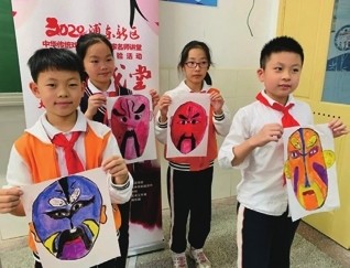 记者 曹莹 10月19日下午,2020浦东新区戏曲进校园“戏曲脸谱绘画课”观澜小学专场在新川校区美术室举行。 作为浦东新区戏曲传承基地学校,为了让更多的学生感受戏曲这个中华传统文化的魅力,提高学生的艺术审美素养,观澜小学书画社团的学生和艺术老师参加了本次活动。 水墨画是中国传统绘画中运用毛笔蘸墨和色在宣纸上进行绘画的艺术。京剧脸谱是中国传统京剧表演中演员脸上化妆的艺术,当这两种传统的艺术形式相互碰撞时,会产生怎样的艺术效果呢? 观澜小学书画社团的孩子们在上海戏剧学院闫鹏东老师的讲解和指导下,体验了一把画水墨脸谱的乐趣。闫老师通过对脸谱样式、脸谱色彩的象征意义等知识的讲解以及对国画脸谱作品的欣赏,将同学们带入中国传统艺术的殿堂。 五(1)中队的朱君尧同学说,“我这次画的是关羽的京剧脸谱。关羽是大家耳熟能详的英雄人物,三国演义中‘单刀赴会’、‘过五关斩六将’讲的都是关羽的故事。关羽的脸谱色彩是红色的,红色表示忠勇、义烈。通过这次自己亲手绘画脸谱,使我们感受到了京剧的韵味,并加深了对中国传统艺术的喜爱。”