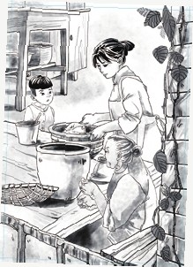 作者:小河丁丁 出版社:人民文学出版社 天天出版社 >>>内容简介 《糊粮酒·酒葫芦》是第三届青铜葵花儿童小说奖之“银葵花”获奖作品,得到了聂震宁、王泉根、林文宝、徐坤、李洱等多位权威专家推荐。 男孩小河全家生活在西峒小镇,生活富足之后,一家人想酿香甜的糊粮酒供自家人喝。小河的妈妈不断尝试,再加上全家人的努力,终于酿出了甜美的糊粮酒,并且声名在外。小河家的糊粮酒引来了一位经历传奇的酒中仙爷爷,小河一家与他结成了亲密的情谊。酒中仙爷爷去世前,把自己随身携带的宝贵的玉葫芦送给小河,但小河的父母又把玉葫芦送回去,让它陪酒中仙爷爷上路…… 作品赞美了宁静平和的乡村田园生活,用人与人的赤诚对抗喧嚣浮华的现代文明。 >>>内文节选 第一章 蜥蜴 一 燕子打着斜飞来飞去,麻雀叽叽喳喳叫个不停,像是被熏得微醉。到处是割禾打谷的,不论男女老少都像是醉了。抱禾的打着趔趄,踩打谷机的手舞足蹈,割禾的仿佛在糊粮中游泳。 然而集镇上一户姓丁的人家,早稻小暑那天就打完了,谷已经晒好入了仓,连晚稻也插上了。原来丁家没有晒谷坪,快上这么一拍,就不必为晒谷发愁了。 那么今天丁家在做什么?瞧,户主丁才兴带着玉兰、大河和小河三姐弟,在自家红薯地翻薯藤呢。 薯藤在垄沟里乱爬,发出不定根,影响主根红薯发育。隔些日子就要将薯藤从一边垄沟一条一条拔起来,甩到另一边垄沟,像给土地梳头。小河瞧瞧姐姐玉兰,她太爱惜自己的皮肤了,不仅戴着草帽,穿着秋衣秋裤,还用白毛巾遮住脖子。再瞧瞧哥哥和爸爸,瞧瞧自己,他就笑出声来。父子仨爱穿背心短裤,肩膀上、大腿上晒出黑白分明的界线,好比画上去的。 “有个人活也不干。”大河说。 “我去撒尿。”小河跑向附近一条河。 那条河浅浅的,但有几十米宽,近年造起一座大桥。原先打算造五拱桥,后来为了节省材料,造的是三拱桥。造桥之前大家说惯了嘴,仍然叫它五拱桥。 小河穿着凉鞋,到了河边,涉水过了沙洲,走到一个桥墩后边撒尿,还探出头,冲着大河挥一下手。 大河啐了一口,说:“我们家东边那块菜地也挨着河。” 才兴暗暗发笑。 玉兰只顾低头干活。 这条河叫大河,从北边峪口水库流下来,弯弯曲曲地把西峒割开两半,集镇和两座石山在大河东岸。另有一条小河发源于东边山岭,往西横穿集镇与大河会合,投入南边山岭的怀抱。兄弟俩的名字是才兴向这两条河借来的,到了河边,两人就爱戏弄对方。 小河撒完尿,在沙洲上挖一口草帽大的小井,当中就渗出水来,一开始是浑的;再开一条小渠把浑水引到河里,井水就变清了。 小河刚要喝水,玉兰抬头叫道:“水里有沙虫,有细菌。” 才兴说:“我们也渴了,你回家拿保温瓶打井水来。” 小河跑上五拱桥,冲桥下啐了一口,回集镇去了。 二 集镇是一条南北向的长街,从北到南分为上街、中街和下街。丁家住在上街,平时挑水是去上街北端马路边那口水井,只有一里多路。过五拱桥回家也只有一里多路。小河一去一来,足足用了一个钟头。 小河回到地头,大河就说:“有个人才好玩哦。” 小河说:“我到下街打水去了,你一喝就知道。” 下街水井离丁家有三里路,而且是在大石山底下,要走几十级湿滑的石阶下去。这口水井,整个西峒数第一。这是山下一个岩洞,常年有阴河水涌上来,数九寒天温温热,三伏天却冰冰凉。小河顶着太阳走远路去下街打水,功劳那是不小的。 保温瓶的塑料盖就是现成的水杯。玉兰喝了一杯,大河喝了一杯,才兴连喝两杯。 玉兰说:“下街井水,就是好喝。” 才兴说:“酿糊粮酒,要是用下街井水,就特别好喝。” 小河抠一下鼻孔,说:“为什么?”才兴笑了笑。 姐姐说:“糊粮发好酵,把水添进去就变成酒,当然要添好水才有好酒。” 才兴和玉兰继续翻薯藤。