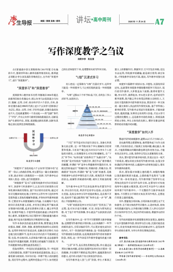 向明中学 肖友清 在《普通高中语文课程标准(2017年版)》实施的今天,要将学科核心素养的教育落到实处,教师就必须配合学生涉及高阶思维的自主、合作的“深度学习”,进行“深度教学”。 “深度学习”和“深度教学” 美国教育心理学家本杰明·布鲁姆在1956年提出的教育目标分类理论中,将认知学习由低到高分为知识、理解、应用、分析、综合和评价六个层次。后来,洛林·安德尔森在1990年代将上述六个认知学习目标修订为记忆、领会、应用、分析、评价和创新。安德尔森的改动不大,但他最重要的一个改动是——用“创新”取代了“评价”,作为认知学习教育目标的最高层次。创新是指产生新的作品、思想,或者提出新的思路。创新性思维应该比批判性思维更高级。 “深度学习”涉及的是六个认知学习目标中自“应用”一阶以上的高阶思维,学生要写出一篇文质兼美的文章,就必须深入到最高层——创新。写作教学也必须深入到这一层阶,进行深度教学。 “深度教学”是为了克服传统教学对知识的表层学习、表面学习和表演学习,以及对知识的简单占有和机械训练的局限性,基于知识的内在结构,通过对知识完整深刻的处理,引导学生从符号学习走向学科思想和意义系统的理解和掌握,并导向学科素养的教学。它要求学生深度理解知识内涵,主动建构个性化的知识系统和意义系统,并有效迁移运用于解决真实情境中的问题,追求在获得知识意义、建立学科思想、发展学科能力、丰富学科经验的基础上养成学科核心素养。深度教学以知识观和学习观的重建为根本基础,绝不是指无限增加知识难度和知识量。 写作本身涉及的就是高阶思维,需要通过思维的假设、推断、思辨、想象、联想等把阅读和生活的经验,运用所学的知识表述出来,是静态知识转化为动态能力的关键环节,是学生知识内化的不可或缺的过程。但是,学生阅历浅,生活体验不够丰富,这会直接导致他写作质量的粗鄙,思想观点的偏激乃至错误,写作深度教学的必要性就显而易见了。 经验有两种,一种是自己的直接经验,另一种是别人的间接经验。而源于自身体验的直接经验,是让人感受最为深刻的。书本知识是一种源于别人的间接经验。而在写作过程中,这两种经验必不可少,如何把自 己的生活体验写下来,是需要相关的写作知识的。 “U型”沉浸式学习 有人把这一过程称为“U型”沉浸式学习,这种学习就是一种深度学习,与之相匹配的就是一种深度教学。 “U型”过程由三个环节组成:下沉、自我加工和上浮环节。如图所示: “下沉”环节是对知识进行表征化、表象化和具象化的过程。这一环节既有助于学生理解知识的背景和现象,又有助于建立起书本知识与学生个人经验的关联性,从而增强学生对知识的理解性。在“下沉”环节中,“先学后教”的效果优于“先教后学”。“先学后教”是对传统的“先教后学、课后作业”教学模式的颠覆。所谓的“学”是学生带着教师布置的任务、有既定目标地进行“明确时间、明确内容、明确方法、明确要求”的自学;所谓的“教”是“点拨”的意思,是教师根据学生的自学情况进行点拨,或规范其不准确的表达,或解答其疑惑的问题,或纠正其错误的理解。 写作教学中此环节应该是教师先布置写作任务,学生自行完成,再讲评总结学生经验。此处的学生经验,是指全体学生写作经验的集合,是良莠不齐的,是有待于通过教师的“教”和学生进一步“学”,继而上升到规律的认知。 “U型”的底部是学生对知识进行“自我加工”的过程,是对知识进行理解、对话、体验与探究的过程。有了这个环节的保障,学生就会产生跃跃欲试的冲动。 在写作教学中,这一环节不仅需要群文教学做铺垫,还需要写作教学的分项训练,以此来确保下一环节的顺利进行。分项训练的写作,可以更好地完成知识的内化,为下一阶段的创作做准备。这一阶段是阅读与写作紧密结合的阶段,也是阅读指导写作的有效教学阶段。然而,这一环节却是写作教学普遍性的重大缺失。 “上浮”环节,是反思性思维的过程。学生通过运用知识解决问题,进而反复循环加深对知识更深一层的理解,并在循环不断的运用过程中,超越获取知识的意义,进行自主性的个性化审美创作活动。 当写作教学进入到“上浮”阶段,学生才算真正意义上的掌握知识。掌握知识,它不仅包含知晓,还包含会运用。传统教学的灌输,就是缺乏使用,缺乏体验,才导致教学有效性不高。据此,写作教学有强化的必要。 深度学习强调学习的自主性、丰富性、沉浸性和层进性,这就要求深度教学围绕着深度学习而设计。现行的写作教学,大多数是如下流程:教师布置作文题,学生写作,教师批改,学生范文讲评。这样的写作教学流程,既不能让学生体现出积极主动的投入,又没有丰富的教学内容和教学活动,更没有对一种文体或一篇文章深入浅出的写作探究实践。基于学科核心素养的背景,写作教学必须进行深度教学,才能突破现状,提高质量,发挥其应有的育人价值。无论从学习过程的完整性上,还是教学内容的深度上,抑或是教师的主导性、学生主体性的发挥上,都存在着这样或那样的有待提升的问题。 “深度教学”如何入手 要进行写作的深度教学,就要从以下几个方面入手:首先教师观念需要转变,教师要养成下水作文的习惯