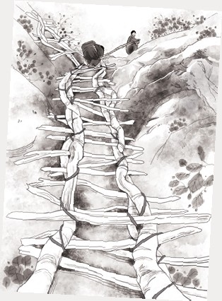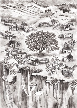 作者:王新明 出版社:人民文学出版社 天天出版社 >>> 内容简介 这是一部内容独特、阳光向上的优秀作品,在第三届“青铜葵花儿童小说奖”评选中获“金葵花奖”。作品以孤悬在几千米高的悬崖上的彝族“悬崖村”为背景,勾勒出了彝族山村浓郁的田园画卷,赞美了彝族百姓努力自强,从贫穷走向富裕、从封闭走向开放的故事。作品围绕两位彝族少女阿嘎和依呷展开叙述,把她们的个人成长和脱贫致富、乡村振兴的大背景结合起来,贴合“精准扶贫”的社会现实,弘扬努力、自强的正能量。两个彝族少女就像大山上的嫩芽,虽然柔弱,但又无比坚强,作品语言灵动,气质纯净,昂扬向上,适合孩子阅读。 >>> 内文节选 第一章 悬崖高,村庄矮 高高的山崖上,有座矮矮的村庄,名叫阿土。太阳落山,阿土村整个被笼罩在一团橘红色的霞霭里,蛾眉月悄然爬上西南方的矮空,短暂停留后,便坠入地平线。一袋烟的工夫,黛青的山野就与暮色融到了一起,从人们的眼皮子底下消失了一般。 这是生活在阿土村的第四代人。 阿土村的人都睡得早,村里的人怕费电,早早吃了晚饭,便吆喝着家里的娃娃回屋准备睡觉。小娃娃“咿咿呀呀”地哭,大娃娃野,喊几遍都不回,惹得阿妈们发脾气,叉起腰大骂:“鬼娃娃,黑灯瞎火,看不掉下崖摔断腿。” 事实上,当村里只剩下几盏稀稀落落马灯的光亮时,野在外面的孩子就都灰溜溜地回家了。大娃娃疯够了,带着一身心满意足的疲惫冲进家门,屁股后面跟着流鼻涕的小弟弟小妹妹。这些小娃娃不受大孩子待见,但是他们仍然心甘情愿当跟屁虫,屁颠屁颠地跟在哥哥姐姐后头跑,有时跑丢一只鞋,有时摔个狗啃屎。要是在阿爸阿妈面前,他们早就咧开嘴哭了,可是,在哥哥姐姐面前,他们不敢哭,即使想哭也拼命忍着。他们的小脑袋瓜里明白着呢,要是哭了,被哥哥姐姐嫌烦,就当不了跟屁虫了。 当跟屁虫有很多好处,哥哥淘汰的污糟沙包,姐姐不要的脱丝发绳,对于跟屁虫们来说都是宝贝。跟着哥哥姐姐总能见识到有趣的游戏,虽然,大多时候哥哥姐姐根本不带他们一起玩,他们只能和小狗一起坐在一边看,可这已经让他们无比知足。哥哥姐姐玩得高兴,高声欢呼时,小狗拼命地摇尾巴,跟屁虫们一边往鼻子里吸鼻涕,一边拼命地拍小手。 也有时候,大娃娃是怎么也不愿意带跟屁虫们玩的,他们挤眉弄眼,略施小计就把“尾巴”甩掉了。掉队的小娃娃放声大哭,一路抽噎着回家告状。告状未必能讨到好果子吃。如果大人心情好,会顺手给个什么好玩的好吃的哄一哄,如果正赶上大人心情烦躁,他们就会被笤帚疙瘩轰出来。跑得快,能躲过一顿揍,如果比笤帚疙瘩跑得慢,屁股蛋子就要遭殃了。 阿土村藏在群山间,一边是望也望不到尽头的山谷,山梁一道连着一道。那绿色的山梁,一道比一道浅,朝远处铺排而去,最后隐没在天边;另一边则是陡峭的山崖,山崖下有学校,有牛牛坝,有集市,有更多热闹富裕的村庄。 望山跑死马。 阿土村的人都知道这个道理。往山谷那边走,眼瞅着就在鼻子尖底下的山,骑上马,套着车,还是要走小半天。一往一返,有时就要在山里过夜。 虽说是山里人,但毕竟不是个个会狩猎,遇着些狼啊豺啊什么的狠茬子,难免心惊胆战。 有时使唤大牲口驮着家什,见着善奔的野兽,就累赘得很,怕牲口被咬死了,被糟蹋了,又担心没了脚力,撂到山里没法回村。 雨季一来,情况就更让人恼火了。拉达河一涨水,整个山谷就没在河水中,把阿土村变成一处孤岛。 所以,大多时候,阿土村人下山都走山崖那一侧。从崖上到山下有十七条藤梯,每条藤梯十几到几十磴。这条路虽然艰难,下个山,上个山,都简直要人半条命,但是能节省很多时间和脚力。 这也是阿土村几辈人都在走的路。这条路被人们称为“天路”。 说起这条路,老毕摩就会不停地“啧啧啧”咂嘴,打开话匣子说上三天三夜。 他说多亏祖上想出用藤条编结梯子的好法子,才为后辈寻得了出路。后辈应该感恩戴德,多念老祖宗几个好。不然,困在山崖顶上,不知早饿死几个来回了呢。
