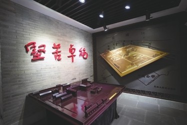 走进校史馆,映入眼帘的是吴淞中学校歌《江海之旁》。校歌曲作者为音乐家、音乐教育家、曾创立中国第一所音乐学院——国立音乐院的萧友梅;词作者是陈柱尊,上世纪30年代国内闻名的古典文学专家。校史馆一侧的沙盘上方写着“坚苦卓绝”四个大字,这是由学校在战争年代艰难办学期间,吴淞中学校长程宽正提出的校训。下方的沙盘还原了吴淞大学城被日军炸毁前的风貌。