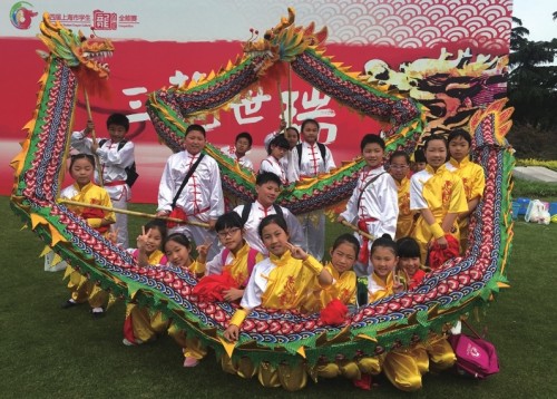 “遥远的东方有一条龙,它的名字就叫中国……”这首歌很多同学都会唱。龙是中华民族的图腾,中国的龙文化源远流长,龙的形象已深入到了社会的各个角落。上海市闵行区浦江第一小学在校本课程里融入龙文化,其编写的《历久弥新龙文化,立德树人育新苗》“一校一案”刚刚入选“一校一案”落实《中小学德育工作指南》案例,成为上海市获评的10个案例中的一个。 记者 曹莹 【课程开发】 确立三大校本课程 上海市闵行区浦江第一小学是一所从农村学校逐步走向新街镇学校的百年老校。据浦江第一小学校长兼党支部书记张蕊在接受记者采访时介绍,从1997年起,浦江第一小学就结合当地舞龙习俗以“龙文化”为教育品牌,通过“龙之根、龙之魂、龙之魅、龙之舞、龙之品、龙之格”几大方面积极弘扬龙的“团结合作、开拓奋进、与天和谐、造福人类”的精神,让学生初步了解中国龙文化的起源、发展等方面的基础知识,增强学生对龙文化的认同感,增强学生的民族自尊心、自信心、自豪感。 据记者了解,学校围绕龙文化逐步开发了“儿童龙文化探究与实践”、“中华神龙”、“小小神龙”三大校本课程,通过识龙、说龙、画龙、写龙、做龙、刻龙、侃龙、舞龙、唱龙等九大方面,结合国家意识、文化认同、公民人格等,通过学科互动、活动开发、突破时空等多种形式,引导全校师生在相关实践中培育民族精神。 【环境渲染】 在校园中感悟“龙文化” 浦江一小为了营造富有特色的龙文化氛围,不仅开设了龙文化课程,还构建了“青龙九书”校门、“龙腾世纪”浮雕、龙文化陈列室、龙文化主题廊等,在校园里营造无处不在的龙元素。在陈列室和主题廊的作品征集中,木雕龙、铜龙、玉器龙、石龙、扇面龙、剪纸龙、风筝龙、龙书、龙文等近1000件学生作品或藏品得以制作和收集。同学们进一步感受龙文化的过去与现在,感受龙文化的古老与传承,从而进一步树立主人翁意识,激发他们的参与意识,从传统走向未来、走向世界,引导学生学做人。 【学生体悟】 在舞龙中感受团结的力量 一条龙必须几十个人团结一心才能舞好。“几十人,一条心”并不是那么容易配合好,有的同学一个失误就会导致后面的队伍全部被打乱;有的同学几个来回后,已是满头大汗,两臂累得抬不起来。通过舞龙,同学们明白团结的意义和体能锻炼的重要性。 书法是中国特有的传统艺术。很多同学第一次听说“写龙课”时还很纳闷——就写一个字,那不是很简单吗?但真正走进“写龙课”,同学们才知道中华书法艺术博大精深,光一个“龙”字就有很多变化:楷书是横平竖直的“方块字”;篆书有古朴的美感;行书如行云流水,很灵动…… 张校长总结说,希望通过龙文化的浸润,培养具有龙的精神,符合国家发展需求,德智体美劳全面发展的社会主义接班人。