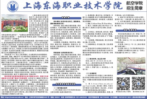 上海东海职业技术学院航空学院招生简章