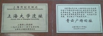 大钊、瞿秋白、陈独秀等人的名字,学生名录则有李硕勋、杨尚昆等人的名字。同时该校也是青云广场的遗址,在上海工人第三次武装起义中,工人和学生队伍就是从这里集队出发掀起了革命的浪潮。