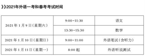 本报讯 2021年统一高考外语科目考试(1月份)和上海市普通高校春季考试将于2021年1月9日-11日举行。 为切实保障广大考生和涉考工作人员的生命安全和身体健康,上海市教育考试院根据考前、考中、考后不同阶段做了如下十条提醒: 一、考前 1.2020年12月23日前,考生须完成本人“随申码”注册或“亲属随申码”申请。同时自行下载《2021年统一高考外语科目考试(1月份)和上海市普通高校春季考试考生考试安全承诺书》(以下简称《承诺书》),并按照《承诺书》要求如实、完整填写相关信息。 2.从12月26日起,考生不得离沪。考生若有境外或非低风险地区活动轨迹的,按本市疫情防控最新规定要求处理。不具备考试条件的考生不得参加本次考试。 3.从12月26日起,考生若出现发热(体温≥37.3℃)等症状,应及时就医,并进行核酸检测。考前7天内新冠肺炎核酸检测阴性报告将作为考试当日入场凭证。 二、考中 4.考试当日,请考生至少提前45分钟到达考点。进入考点时,考生须接受防疫安全检查和指导,并按考场规则要求持证入场。考生应在首场考试时携带《承诺书》进入考点,并在进入考场时交予监考员。进入考场时,须摘下口罩接受验证,就座后可不用佩戴口罩,其他时间须佩戴口罩。 5.笔试当日,如考生有发热等身体异常状况,须听从考点安排,按要求进行考试。 6.听说测试考试当日,如考生有发热等身体异常状况,须听从考点安排,按要求在指定场次进行考试。 三、考后 7.考试结束后,考生听从考点安排分批、错峰离场。家长如有接送考生的,应服从公安和考点工作人员管理,避免考点门口人群聚集。 四、其他 8.考试期间,请家长保持手机联络畅通,考生做好个人防护,避免前往人员密集地区。勤洗手,公共场所佩戴口罩。做到居住地和考点之间保持“两点一线”,避免和无关人员接触,同时做到在各种场所确保一定的社交安全距离。 9.考试期间,考生应保持正常的饮食习惯,注意饮食卫生和营养搭配,并注意防寒保暖,避免感冒、发烧等情况发生。 10.其他未尽事宜,考生与家长均须参照本市最新防疫要求执行。 希望考生和家长能以健康的状态、良好的心态迎接考试。 (来源:上海市教育考试院官网)