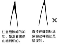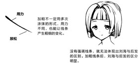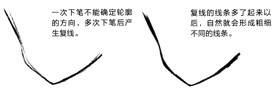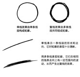 绘画初学者怎么练习画线条?怎样才能画好动漫线条?画好动漫线条有哪些技巧?想必这些问题都是绘画初学者们比较伤脑筋的问题。 绘制一幅画时,用线的差异和不同画面基础效果的添加,会对这幅画带来不小的影响。本节介绍画画之前需要具备的基础知识,如果在绘画时带着这些知识点去画,也许会有与之前绘画时不一样的感觉。绘画的用线与写字的线条有较大不同,特别是漫画的线条,要求细腻准确,能区分出层次感,下面就一起来画出有魅力的绘画线条吧。 1.用曲线画出柔和的线条 在绘画的人物中,有一些部位的轮廓线条需要制造出柔和感,如女性的皮肤、柔顺的头发等等。这时候,在画线时要抱有曲线的意识,用流畅的曲线表现出轮廓的柔和感。 画曲线时手腕越放松,画出的线条越流畅,感觉也更柔软。带着画出连贯曲线的意识,可以表现出头发的柔软感。而用曲线表现布料的边缘,会让布料显得轻薄柔软。如下图: 2.直线带来轮廓的硬朗感 与曲线相反,如果采用较多的直线,就会形成线条间的不连贯,从而带来轮廓比较硬朗的画面效果,直线可以表现男性的肌肉感与较硬物体的质感。 画直线时要注意顿笔的节奏,通过直线的转折表现出坚硬有力的感觉。我们在绘制男性身体的时候,经常需要用到这种硬朗的线条,这种线条在表现肌肉硬度的同时,还能表现出骨骼的突起。而用折线表现布料的边缘,布料会显得厚实硬挺。 如下图: 3.画面的层次由线条的粗细决定 漫画的线条通常都比较简单,在没有灰度做辅助的前提下,我们可以用线条的粗细决定画面中物体的前后空间感,从而体现出整个画面的层次感。 线条对画面的影响 当线条没有粗细变化的时候,容易分不清层次,造成前后关系的混乱。而可以加粗的线条除了能够凸显画面的重点,让画面更有层次感之外,还可以加强光影的感觉,让人物更立体。如下图: ①刘海处轮廓的粗线,使其与马尾部分区分开了前后关系。 ②加粗下巴部分的线条,体现出与脖子的前后关系。 ③裙子的下摆线条加粗后,与头发的线条区分明显。 ④手部较粗的轮廓线,让其有处于裙子上方的效果。 补充说明: 加粗不一定要用多次涂抹的形式,用力不同,也能让线条产生粗细的变化。 添加线条的位置 如下图: ①头发发簇之间的缝隙处,需要加粗一些。 ②脸庞轮廓以及脖子与下巴轮廓的交界处需要加粗。 ③头发搭在身体上时,与身体接触部分的头发轮廓线条需要加粗。 ④身体线条与手臂线条连接处需要加粗。 ⑤绘制与手接触的道具时,接触处的线条需要加粗。 ⑥为了突出表现手部的层次感,整个手部轮廓的线条需要加粗。 ⑦腿部上端与服装交界处需要加粗。 补充说明: 注意缝隙间的加粗,是沿着线条由粗到细的。而直接在缝隙处涂黑的这种画法是错误的。 4.单线与复线 在漫画的线条表现中,除了线条的粗细外,还涉及单线和复线的概念,加粗线条的本质也是复线的一种。了解这两种线条的不同,能让我们画出更有表现力的画面。 单线与复线的含义 如下图,单线表现一条线段的形状和走向,它对轮廓的表现十分清晰。而复线是用多条线表现轮廓,它们在相同的线条走向上有一定范围内的波动,从而产生复线的效果。 不同画面中的单线和复线效果 如下图,单线效果表现出来的画面显得比较干净整洁,很适合后期涂上灰度和上色。而复线表现的轮廓有不确定性,通过多次下笔能让线条更加准确和灵活,这种效果通常出现在初稿中。 同一画面中的单线和复线运用 单线和复线的共同组合,能表现出完成度较高的初稿,这种绘制方式很适合初学者认识和理解线条。 一次下笔不能确定轮廓的方向,多次下笔后产生复线(如下图左)。复线的线条多了起来以后,自然就会形成粗细不同的线条(如下图右)。 如果复线太多的话,会降低画面的完成度,看上去像草图。而下图右,复线与单线的结合,让画面效果更有张力。 补充说明: 复线实际上是一种“试笔”,通过多次下笔的绘制,能修正第一笔线条的方向,让轮廓更准确。