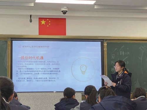3月6日下午,习近平总书记看望参加全国政协会议的医药卫生界、教育界委员时指出:“‘大思政课’我们要善用之,一定要跟现实结合起来。上思政课不能拿着文件宣读,没有生命、干巴巴的。” 打造“接地气”的思政课课堂,一直是上海中小学探索的方向。老师们从一个个现实的案例出发,带领学生基于理论,结合党和政府的重要路线方针政策,发挥学生的主动性,探究鲜活的社会生活,以这样“接地气”的教学方式滋养学生的“灵气”。 记者 刘春霞 结合身边资源为学生创设真实情境 上海市政治特级教师,曹杨二中挂职副校长、教研组长兼任兰田中学书记校长谈俊说,结合现在新课程、新教材“双新”的背景,新课程标准中明确指出,当前的思政课是要构建学科逻辑和实践逻辑、理论知识和社会生活相联系的活动型学科课程。 谈俊坦言,当前高中使用的国家统编教材必修一、二、三、四模块中有较多内容来自党和国家制定的文件政策,原汁原味。对高中学生来说,要一下子把握这些文件精神的确是有难度的,所以必须要创设情境,把现实的社会生活、社会现象和教材内容紧密结合起来。“老师在讲授很多教学内容时,并不是仅仅把教材中的原文告诉学生,而是从中提炼出关键词,与生活中的真实情境紧密结合起来,只有把思政小课堂和社会大课堂结合起来,学生才能有所悟、有所感、有所行,思政课教学才不会干巴巴的。” 谈俊认为,目前网络上乱七八糟的信息较多,而未成年人心理发育又不是很成熟,如果受到外界很多信息刺激和干扰,青少年学生应该怎样去判断,需要老师进行引导。“这个引导不能仅仅靠思政课,而是需要学校、家庭、社会等多方的教育合力来推进,形成大思政的教育生态环境。思政课本身就是德育的主渠道,也就承担着义不容辞的职责。思政课老师要借用各种课程资源统整起来,让学生通过思政课的学习,提升价值判断和行为选择的能力。” 从现实案例出发探究社会生活 “教育是民族振兴、社会进步的基石,是提高国民素质、促进人的全面发展的根本途径。重视劳动教育,能够为国家的新一代树立劳动精神,培养更多具有劳动精神的青年人才……”3月4日下午,复旦附中的思政课教室里,高一年级希德学院理科综合实验班的同学们在进行“思政课综合探究课题展示”,上台展示的小组选择的探究小课题是“弘扬劳动精神与投身创新创业”。小组的5位同学以“哲学知识”为思考工具,以某知名电商品牌的创业成功之路为案例,从“内外因的辩证关系”角度,思考创新创业的动力源和国家的制度保障及政策支持之间的关系。 出乎同学们意料的是,展示小组还给大家准备了“惊喜”——他们根据讲述的内容,给同学们出了一道政治大题,并现场抽“幸运观众”上台解题。 李思民成了“幸运儿”,被抽中上台解题。“这道题和他们所讲的主题是有深刻联系的,里面涉及的技术创新、把握市场形势的能力,都是劳动精神的体现。”在李思民看来,展示小组出的这道题,虽略有些不足,但总体是很不错的。而除了题目“惊喜”,展示小组还以“竞争情报分析法(VRIO模型)”为工具,进行了一次模拟创业可行性分析。 在复旦附中,“思政课综合探究课题展示”是非常受学生欢迎的课程形式。李思民说,在这个课上,都是学生在讲台上讲述探究课题的内容和成果。为了讲好,大家都会精心准备,而且课堂气氛热烈。台上同学讲得有劲,台下同学听得起劲,各种想法不时互动、碰撞。 “‘双新’(新课程、新教材)背景下,我们政治教研组着力打造‘接地气’‘有底气’‘长灵气’的思政课课堂,紧紧把握时代脉搏,从一个个现实的案例出发,带领学生基于理论,结合党和政府的重要路线方针政策,发挥学生的主动性,探究鲜活的社会生活。”复旦附中政治教研组组长丁恒介绍说,以学生的核心素养培育为目标,以师生间的合作探究为基本方法,以马克思主义科学理论为学习工具,以新时代中国特色社会主义发展的鲜活事例为主线,着力打造灵动的思政课课堂,是复旦附中思政课课堂一直以来坚守的目标与导向,“接地气”的教学方式滋养了学生的“灵气”,使得理论与政策的教育内化于心,令思政课的教学有了扎实的“底气”。