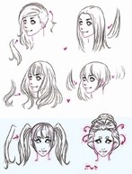 学插画漫画,最难画的部分是哪一个?有人说是眼睛,有人说是鼻子,但在笔者看来,头发是最难的,既要画出质感,又要画出美感。否则任你五官画得再精致,头发不画好也是一画毁所有! 【画好头发的技巧】 分组处理: 将头发进行分组,在大组中分出小组。头发分组就是在分层次,有了层次头发才会变得丰富又生动。 观察头发方向: 要按照头发的生长方向与梳理方向勾画,同时要感受头发不同方向的微妙变化,切忌方向过多,易将头发画乱。 处理头发发际线与边缘线: 要有线条的长短、粗细虚实的变化,同时头发每组之间的交界线要变化自然。不同的头发用线的感受不同,如实起虚收线、虚起虚收线、虚起实收线、实起实收线等。 在速写中,画头发的理解方法和素描是一样的,但并不需要像素描那样把头发表现出很多层次。 速写中只需要把头发分成两个体块,虚实对比,三个层次(黑白灰)就足够了,所以会有面积较多的空白。 有空白,这样会显得头发透气,不发闷。也能拉开用笔的疏密关系,使局部有节奏感。 头发留白的地方多也能侧面烘托出五官的刻画(留白的部位大多都是在头发顶端区域,头发的质感和特征要在发梢和刘海的位置着重刻画)。 不同的发型就会有不同的外形特征,不过,不论发型怎么个五花八门,它的基本形体是不会变的,那就是头发随着头部骨骼的形体生长的,也就是它的基本是球体。 【基本头发的画法】 头发根据长度和角度会有所不同,但是刘海、侧面、后发的基本不变。接下来看看女性头发的画法吧! 柔软的短发: 简单而没什么特点的发梢。即使发质是直发,毛发一根一根也会容易弯曲,所以将头发轻轻弯曲会更自然,柔软。 向外卷的头发: 头发有很强的卷发,感觉头发在跳跃。毛发的质感给人的印象比较硬,画发梢的时候伸向横向、上等与重力相反的方向。 柔软的长发: 直发质的毛发,不逆重力而下垂。不要把线条笔直地画出来,要画出曲线,才会变成柔和的质感。 卷发: 把头发卷成螺旋状的卷发,画得越尖越细,卷发越细,反之卷发就越大。 波浪卷发: 蓬松的波浪卷,蓬蓬的头发,一边画着大一块的毛发,一边把从束上露出的发毛和其他的毛束画在旁边,就会有分量感。 收起来的刘海: 从发际线侧的中心部分开始,头发沿左右方向径向生长,成放射状往后画出头发。 前额发际,用比较锋利的线条沿着发际线画出来。