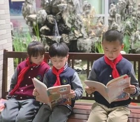 记者 曹莹 为庆祝中国共产党诞辰100周年,营造书香校园,提升语文核心素养,传承教材里的红色基因,日前,上师大卢实小二年级学生集体参与诵读活动,经过海选,部分学生走进“朗读亭”,拍录音视频,了解伟人故事,传承伟人精神。 二(2)中队张沐云在家里诵读了《难忘的泼水节》。这篇课文描绘了敬爱的周总理和傣族人民一起过泼水节的欢快情景。张沐云外公也曾经是一名解放军战士。张沐云读完课文后就采访了外公,请外公讲述当年在海南岛参军时冒着生命危险驾驶着小艇把补给物资运上小岛的故事。 刚刚过去的“学雷锋日”,全校师生以实际行动向雷锋同志学习,开展了各项爱心服务活动。二(1)中队的姜婕妤老师和杨姝仪同学合作朗诵了《雷锋日记》传播雷锋精神。 卢实小二年级语文教研组顾老师认为,语文教材是红色教育的重要载体,通过学习教材中的红色故事,有助于同学们从小打好“中国底色”,传承革命传统的红色基因。