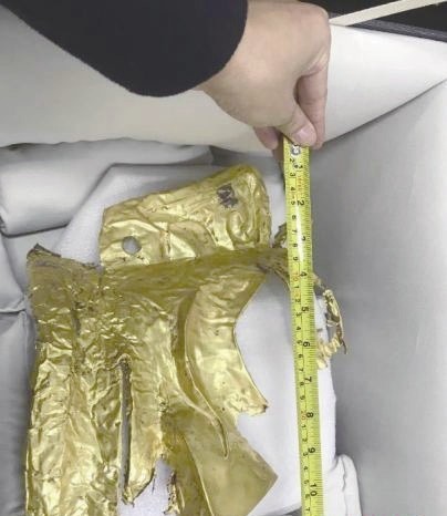 “沉睡数千年,一醒惊天下。”提起位于四川广汉的三星堆遗址,世人如是评价。 三星堆古遗址分布面积12平方公里,距今已有5000年历史,是迄今在中国西南地区发现的范围最大、延续时间最长、文化内涵最丰富的古城、古国、古蜀文化遗址。1986年发现1、2号“祭祀坑”,出土青铜神像、青铜人像、青铜神树、金面罩、金杖、大玉璋、象牙等珍贵文物千余件,多数文物前所未见,揭示了一种全新的青铜文化面貌。1987年考古工作者提出“三星堆文化”命名,推断其年代相当于夏代晚期至商周之际。 2021年3月20日,“考古中国”重大项目工作进展会在四川成都举办。据了解,考古工作者于2019年11月至2020年5月新发现6座三星堆文化“祭祀坑”。“祭祀坑”平面均为长方形,规模在3.5平方米至19平方米之间。目前,3、4、5、6号坑内已发掘至器物层,7号和8号坑正在发掘坑内填土,现已出土金面具残片、鸟型金饰片、金箔、眼部有彩绘铜头像、巨青铜面具、青铜神树、象牙、精美牙雕残件、玉琮、玉石器等重要文物500余件。 这之中,发现的半张神秘黄金面具颇为引人注目。三星堆遗址工作站站长雷雨介绍,目前所发现的半张黄金面具重量大约为280克,预计完整的总重量应该超过500克,这比目前国内所出土的商代最重的金器——三星堆金杖(重463克)的重量还要重,如果能够完整发现,这件黄金面具将超过金杖成为目前国内所发现的同时期最重的金器。 据了解,所发现的这半张黄金面具的宽度约23厘米,高度约28厘米,而方形面部、镂空大眼、三角鼻梁、宽大的耳朵……这件黄金面具的风格也与此前三星堆出土文物的风格十分相似。 而此次发现的这件黄金面具,则为古蜀文明中对于金器的崇拜,又增添了一大实证。同时,又带来了许多等待被揭开的秘密。 来源:中国新闻网