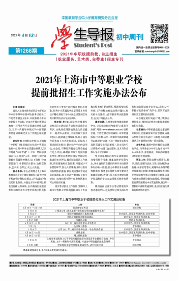 2021年上海市中等职业学校提前批招生工作实施办法公布