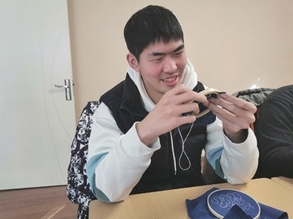 4月14日,尚德实验学校国际部来了一群特殊的少年——浦东新区辅读学校“爱碍爱心智障碍青年支持行就业基地”的安阳、黄豪、小鹏三位同学。他们带着自己绣出来的千年古纹饰与尚德国际部的同学们展开了交流,并手把手教这些同学也体验了一次刺绣的乐趣。据带队的钱晓忆老师介绍,“爱碍爱就业支持”项目通过教授残障人士手艺,让他们在找到职业生涯方向的同时,在工作中也找到尊严感与价值感。 记者 曹莹 摄影报道 【项目意义】 让残障学生自食其力、塑造自信 上海市浦东新区辅读学校创办于1953年,是一所对智力障碍儿童及青少年实施九年义务教育与康复训练,以及职业技术培训的特殊教育学校。学校少先队是上海市红旗大队。据王英校长介绍,学校致力于为特殊智障学生开设职业教育,创设职前一公里转衔课程,为智障学生就业需求提供了进一步的支持,“爱碍爱心智障碍青年支持行就业基地”就是学校与“爱碍爱就业支持”基金合作而生的项目。 王校长介绍,每天上下穿梭800针,可以让这些少年变得安静,不再那么容易躁动,绣针翻飞里的手眼脑协调就是他们最好的康复。王校长强调,更重要的是,当他们给大学生姐姐、小学生妹妹讲纹饰教针法时;当他们得知他们的产品入驻手工艺艺术馆,与大师的作品放在一起时,他们脸上自信的笑容足以驱赶笼罩着一个家庭的阴霾。 【交流现场】 他们也能为传统文化发声 记者在尚德实验学校国际部的交流现场看到,当天的活动来了安阳等三位心智障碍少年,有人给他们打招呼,他们都会报以和善羞涩的笑容。 讲座开始前,尚德的同学们围着三个少年,叽叽喳喳问个不停,“安阳哥哥,这些弯弯曲曲的纹饰代表什么意思啊?”“黄豪哥哥,这四个叉叉有什么含义吗?你们绣起来累不累啊?” 在讲座中,钱老师在讲台上将绣品上纹饰的意义一一道来。中间,安阳甚至还走上讲台做起小讲师,向大家解释金沙太阳神鸟图纹的含义,“它出土于有3000年历史的金沙遗址,太阳有12道光芒,它代表了一年有12个月,我们的绣品上这些纹路就代表了一年12个月、24个节气。”虽然语调刻板,但自信的光芒在安阳的脸上闪耀。 讲解完毕,每个同学手上还拿到一个绣绷,安阳和他的伙伴还当起老师手把手地教同学们绣起千古纹饰。 据钱老师介绍,类似于在尚德实验学校这样的交流活动,已经举办过多次。钱老师表示他们希望通过这些交流活动让心智障碍人士被“看到”、被“接纳”、被“拥抱”。 特写 没有语言的特殊青年光荣纳税600元 当记者上周一走进浦东新区辅读学校主教学楼二楼的绣房工作室时,看到的景象是金色的阳光斑斑点点洒满房间,窗外一片葱郁,周遭一片宁静,一群心智障碍少年正在埋头认真地绣着纹饰。这群少年手里是神秘而古雅的花纹,脸上是自信而纯真的笑容。 钱老师向记者特别介绍了工作台前一位叫黄豪的青年。据钱老师介绍,上个月因为赶订单,大家工作的时间会比平常多一点点,黄豪的收入高到给国家交了600多块钱的税。对特殊青年人群来说,它又是一种里程碑式的事件。交税意味着他也可以帮助别人。原来他们一直是接受的角色,他们永远是拿国家给他的、别人给他的,他们一直在接受帮助。但是有一天他可以自己养活自己,还可以帮助别人。 钱老师表扬黄豪,“据我所知,全国还没有哪个项目的特殊青年纳税额有你高,你是全国第一哦。”听到自己拿了全国第一,黄豪笑得无比灿烂。 钱老师表示,希望大众注意到心智障碍这一特殊人群的声量,“和古代纹饰一样,爱没有古今之分,也没有贤愚之别,没有什么可以阻碍爱的存在。”学校和基金会所做的这一切都是为一个目标——让这群孩子心理有尊严,眼里有自信。