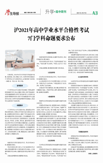 沪2021年高中学业水平合格性考试7门学科命题要求公布