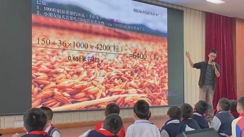 5月22日,“共和国勋章”获得者、中国工程院院士、国家杂交水稻工程技术研究中心主任袁隆平,因多器官功能衰竭在长沙逝世,享年91岁。消息传来,天地恸哭。连日来,人们追思缅怀袁隆平院士,向他道一声“谢谢”,感谢他“用一稻济世,使万家粮足”。来自浦东张桥小学和周浦第三小学的师生也以自己的方式缅怀了袁爷爷。 记者 曹莹 通讯员 朱佳琪 听袁爷爷的话,好好吃饭 虽然浦东张桥小学的小朋友们没能前往长沙,但张灏楠老师用一节《合理膳食,均衡营养》的健康教育课,带领一年级的同学们知道了“吃饭”有多重要,又用一节介绍袁隆平爷爷事迹的班会课,和孩子们一起向这位可敬的爷爷保证我们会“好好吃饭,爱惜粮食”。 在这堂名为《合理膳食,均衡营养》的健康教育课上,张老师向同学们介绍了哪些食物要少吃,哪些食物绝对不能吃,还列出一张长长的“生日自助餐食物清单”,让同学们来分辨应该优先选择哪些食物,哪些食物应该克制着吃。 在随后的班会课上,张老师向同学们介绍了袁爷爷的生平事迹,她深情吟诵道,“有些人,伟大到我们以为他们没有生老病死。斯人已逝,精神不朽,今日神州,风吹稻田千重浪,让这个从泥土里来的追梦人安心地乘着白云归去。猗猗嘉禾,今盈我仓,好好吃饭,即为缅怀。” “稻花香里忆起您” 5月24日,周浦第三小学举行了以“稻花香里忆起您”为主题的升旗仪式。聆听袁爷爷的“禾下乘凉梦”后,新一批通过“光盘行动”考核的“节粮小卫士”光荣地登上司令台,自豪地将自己设计的徽章别在胸前。随后,大队部向全体队员发出“文明就餐 杜绝浪费”的倡议,呼吁队员争做“节粮小卫士”。 下午队会课中,学校各中队积极开展以节粮为主题的健康教育课——《谁知盘中餐 粒粒皆辛苦》。辅导员们结合触摸水稻实物、体验微信碾米机、传唱童谣、巧用餐盘六部曲、讲述杂交稻谷的前世今生等活动,引导队员知道“稻田里的守望者”袁隆平爷爷的巨大贡献和粮食的来之不易,争做“慧”吃节粮的小卫士。 晚上队员们还回家请爷爷奶奶讲述了他们记忆最深的一道菜。经过长辈们的忆苦思甜,队员们暗暗下定决心,不忘袁爷爷的嘱托,好好吃饭,节约粮食。