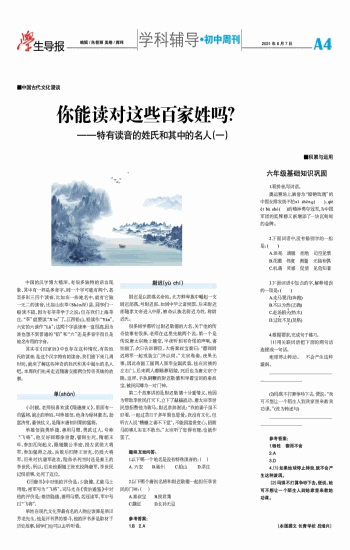 中国的汉字博大精深,有很多独特的语言现象,其中有一样是多音字。同一个字可能有两个,甚至多则三四个读音,比如在一些地名中,就有它独一无二的读音。比如山东莘(Shēn深)县,同学们一般读不错,因为有莘莘学子之说;但在我们上海莘庄,“莘”就要读“Xīn”了。江西铅山,铅读作“Yán”,六安的六读作“Lù”;这两个字误读率一直很高,因为谁也想不到普通的“铅”和“六”还是多音字而且是地名专用的字音。 其实在《百家姓》中也存在这种情况,有些姓氏的读音,是这个汉字特有的读音。我们接下来几周时间,就来了解这些神奇的姓氏和其中诞生的名人吧。本周我们先来走近隋唐交接两位传奇英雄的故事。 单(shàn) 小时候,老师很喜欢读《隋唐演义》,里面有一员猛将,就出自单姓,叫单雄信。他身为绿林豪杰,劫富济贫,豪侠仗义,是隋末唐初时期的猛将。 单雄信骁勇矫捷,善用马槊,勇武过人,号称“飞将”。他交好同郡徐世勣,誓同生死。隋朝末年,参加瓦岗起义,跟随魏公李密,授左武侯大将军,参加偃师之战。兵败后归降王世充,仍授大将军。后来对抗唐军进攻,险些杀死当时还是秦王的李世民。所以,后来他跟随王世充投降唐军,李世民记恨前事,处死了这位。 《旧唐书》中对他的评价是:少骁健,尤能马上用枪,密军号为“飞将”。司马光在《资治通鉴》中对他的评价是:雄信骁捷,善用马槊,名冠诸军,军中号曰“飞将”。 单姓在现代文化界最有名的人物应该算是单田芳老先生,他是评书界的泰斗,他的评书多是取材于历史故事,同学们也可以去听听看。 尉迟(yù chí) 尉迟是以部落名命姓。北方鲜卑族中崛起一支尉迟部落,号尉迟部,如同中华之诸侯国。后来尉迟部随孝文帝进入中原,被命以族名尉迟为姓,称尉迟氏。 很多同学都听过尉迟敬德的大名,关于他的传奇故事有很多,老师在这里先挑两个说。第一个是传说唐太宗晚上睡觉,半夜听到有奇怪的声响,害怕极了,次日告诉群臣。大将秦叔宝奏曰:“愿同尉迟将军一起戎装立门外以伺。”太宗准奏。夜果无事。因此命画工画两人图形全副武装,挂在宫掖的左右门。后来两人都赐葬昭陵,死后也为唐太宗守陵。这样,手执钢鞭的尉迟敬德和举着宝剑的秦叔宝,被民间尊为一对门神。 第二个故事讲的是尉迟敬德十分重情义。他因为帮助李世民打天下,立下了赫赫战功。唐太宗李世民想招赘他为驸马。尉迟恭辞谢说:“我的妻子虽不好看,一起过苦日子多年倒也恩爱。我没有文化,但听古人说‘糟糠之妻不下堂’,不能因富贵变心,招驸马的事儿实在不敢当。”太宗听了觉得有理,也就作罢了。 趣味互动问答:1.以下哪一个地名是没有特殊读音的:( ) A. 六安 B.亳州 C.铅山 D.莘庄 2.以下哪个唐初名将和尉迟敬德一起担任李世民的门神:() A.秦叔宝 B.侯君集 C.魏征 D.长孙无忌 参考答案: 1.B 2.A