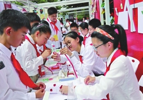 皮影戏、立体书、游戏棋,“红领巾学党史”游园会集齐了许多有意义又有意思的少先队学党史新形式;主题集会中,红领巾讲解员一展风采,用微队课讲述“党的故事”。 近日,团市委、市教委、市少工委在普陀区长风公园地下少先队群雕广场集会,举行“红领巾心向党”——2021年上海少年儿童庆“六一”迎“七一”主题活动。全市300余名少先队员代表共聚一堂,欢庆节日,共同庆祝中国共产党成立100周年。 记者 周胜洁 游园会 多形式展现红领巾学党史 市领导和少先队员们一起参加了“红领巾学党史”游园会,勉励少先队员要牢记习近平总书记的殷殷嘱托,珍惜大好时光,树立远大理想,学党史、知队史,从小坚定听党话、跟党走的决心,刻苦学习,增长本领,努力成长为能够担当民族复兴大任的时代新人。 以“百年百章”为主题的“红领巾学党史”游园会设在地下少先队群雕广场大草坪边,16个展区围绕庆祝中国共产党成立100周年,结合“百年百章”,突出红领巾学党史“一区一品”,让少先队党史学习教育既有意义又有意思。 中国共产党发起组成立地(《新青年》编辑部)旧址、中共一大会址、中共四大会址、中国社会主义青年团中央机关旧址等红色地标被“搬”到了活动现场。 在黄浦区“百年渔阳里少年说”展区,放着少先队员自己设计的“穿越长征游戏棋”和自己改编的《星星之火》手绘书,队员们将学习党史过程中的所见所闻所感写下来、画下来,手绘书包含了《信仰的味道》《建党十二时辰》等21个革命故事。 拓印篆刻、纪念邮戳、茭白叶编织等活动吸引队员积极参与、踊跃尝试。完成每项活动后,即可争得一枚红领巾奖章,争章地图上集满奖章的队员就能兑换惊喜礼物——一本少儿版《光荣之城:上海红色纪念地100》。队员们在精彩纷呈、趣味盎然的游园会中快乐游戏,通过学习了解中国共产党的创建发展历程,激起传承红色基因、争做时代新人的光荣感和责任感。 主题集会 地下少先队群雕全新揭幕 铿锵的鼓号和嘹亮的队歌声中,仪式活动拉开帷幕。陈靖同志为在“红领巾讲解员”活动中表现优秀的少先队员颁发“红领巾奖章”。吴信宝同志为新队员代表颁发《少先队员证》。 仪式环节由“传承红色基因”、“铭记光荣历史”和“争做时代新人”三大板块组成。《黎明前的红色少年》讲述了地下少先队员机智勇敢的斗争故事,将大家带回到解放前的上海。已故地下少先队铁木儿团长段镇同志爱人李惠芳同志,团市委、普陀区委、市儿童基金会的领导和队员代表共同为新修缮的地下少先队群雕揭幕,五彩缤纷的气球缓缓升起,飞向蓝天。 地下少先队群雕坐落于长风公园内,由少年儿童参加战斗浮雕、星星火炬铜雕队徽、少先队员不锈钢塑像和康克清题词石组成,展示了“地下少先队”这个组织的英勇足迹。地下少先队是由中共上海地下党创立和领导的,将少年儿童秘密组织起来,向他们传授革命道理。在党的领导下,地下少先队员们贴标语、发传单、侦察敌情,他们沉着冷静应对各种情况,为解放上海贡献力量。如今这座落成三十多年的纪念群雕完成修缮,在六一当天焕发崭新光彩。 现场,地下少先队员代表章大鸿带领全场少先队员重温入队誓词,庄严的承诺声响彻天空。章大鸿今年已88岁高龄,1946年进入洋泾中学后,他就加入了地下少先队,成为了《新少年报》的义务小发行员。章大鸿希望新时代少先队员能继承革命先辈的优良传统,努力学习,为振兴中华时刻准备着。 微队课 红领巾讲解员讲述“党的故事” 童声唱百年,领巾心向党。《卖报歌》《共产儿童团团歌》《红星歌》《让我们荡起双桨》《少年少年,祖国的春天》《红领巾飘起来》,一首首耳熟能详的歌曲唤醒了几代人的童年记忆。少儿版《光荣之城:上海红色纪念地100》也在现场发布。该书用儿童化语言图文并茂地讲述上海红色纪念地背后的故事,将吸引更多的少年儿童从党的光荣历史中汲取精神力量和历史智慧,知史爱党、知史明责,信心百倍、斗志昂扬地走向未来。 中共一大、二大、四大会址和龙华烈士陵园的红领巾小讲解员们带来微队会《党的故事我来讲》。小讲解员们在学长学姐的带领下,用创新的方式将党的故事讲给更多人听;从爸爸和姐姐手中接过珍藏的《党章》,指引自己走好人生道路;从“四大”到“五大”党员人数猛增的历史原因中汲取智慧,学习团结队员做“水中鱼”;龙华烈士陵园内,许多青少年因为看了《觉醒年代》来祭奠陈延年、陈乔年烈士,而《觉醒年代》的续集便是创造更美好的生活。 手持标语、中共一大会址手绘图等道具,来自黄浦区卢湾一中心小学的红领巾讲解员讲起了“望志路106号的灯光,点亮了新中国的希望与光明”。五年级少先队员撒贝蕾是红领巾讲解员代表,三年级暑假刚成为讲解员时,她就通过研学、网上查找资料等形式学习中共一大的历史并撰写讲解词,利用寒暑假、双休日进行现场讲解。如今撒贝蕾不但会用普通话、沪语讲解,还能用快板演绎。讲解的经历让她感受到如今幸福生活是来之不易的,在学习了习爷爷5月30日给江苏省淮安市新安小学的少先队员们回信后,更让她体会到“结合自身成长实际学好党史,以英雄模范人物为榜样”的重要性,“少先队员不能辜负祖国的期望,要刻苦学习、好好锻炼,成为全面发展