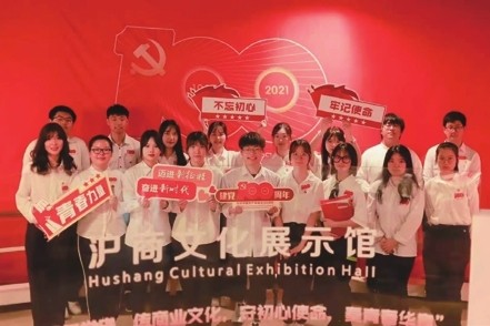 记者 徐红清 2021年6月8日,为庆祝中国共产党成立100周年,上海商业会计学校普陀校区隆重举行“读百年党史,传商业文化,守初心使命,奏青春华章”庆祝中国共产党成立100周年主题展览开幕式暨第四届尚商文化节。 开幕式在校区师生代表深情咏诵的《与百年相见,和百年相约》中拉开帷幕。参展党员同志团聚在党旗下,在党办林蔚主任的带领下面向党旗,重温入党誓词,庄严宣誓。党委书记乔蔓菁在致辞中提到,我们要把党的历史学习好、总结好,将此次主题展览办成行走的党史课堂、别具一格的学习阵营、党团活动的红色基地。 在本次展览中,上海近现代商业美术设计博物馆馆长左旭初先生、非遗瓷刻第二代传人程佩初先生、校区教务党员老师刘南、优秀毕业生王静雅被聘为特邀讲解员,对工商证照历史、海派瓷刻文化、书法和绘画作品为参展领导作了详细介绍。 校区在学期初成立了学生宣讲团,在展览的“青说党史篇”中为广大团员青年开设了红色故事学习课堂,听青年讲述感人英雄故事,让红色基因代代相传。 最后,乔书记宣布开幕并提出,我们要回望过往的奋斗路,眺望前方的奋进路,把党的成功经验传承好、发扬好,厚植爱党、爱国、爱社会主义的情感,让红色基因、革命薪火代代相传。 此次展览为期3个月,分为6个展区,分别展出上海商业文化博物馆商标分馆创立者左旭初先生的100件工商证件证照、非遗瓷刻第二代传人程佩初先生和在校师生所创作的海派瓷刻优秀作品、书法、绘画等54件作品,100张党团活动剪影。 展览中呈现中国共产党在内忧外患中诞生、在磨难挫折中成长、在攻坚克难中壮大、从胜利走向胜利的伟大历程。同时,致力于传承非遗文化、商业文化的同时,打造清荷文化品牌,并体现党团联合、党建带团建的教育活动特色。