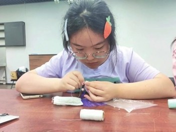 上海市中等职业学校民族文化传承教育基地2021年的前两场市级讲座,日前在中华艺术宫火热开讲! 6月5日,民族服饰文化传承教育基地——上海市群益职业技术学校推出“传统服饰配件——香囊”讲座。 6月6日,珠算文化传承教育基地——上海商业会计学校推出“小小算盘蕴智慧 悠悠国粹放异彩——珠算非遗文化漫谈”讲座。 记者 余长江 懂香囊 做香囊 香囊又名香袋、花囊,是我国一种民间刺绣工艺品,是以男耕女织为标志的古代农耕文化的产物,2008年入选第一批国家级非物质文化遗产扩展项目名录。时至今日,香囊以其文化内涵和实用价值,成为广受青睐的服饰配件和装饰品。 对香囊有所了解后,在群益职校服装专业教师方闻老师及基地校志愿者的指导下,听众们迫不及待地拆开桌上的材料包,开始制作。用于填充的草药一离开密封环境,就散发出清香,令人心旷神怡。 从一针一线缝制到填充药粉,香囊制作并不容易。不少听众第一次尝试如此精细的手工活,不得不向老师和志愿者寻求帮助。“好不容易缝了小口袋,填充时却发现半天都塞不紧。等终于压实了,怎么保证美观,怎么把线头藏进香囊里,又成了问题。这门手艺可真不简单啊!”一位听众感慨。 初识珠算与珠心算 珠算讲座的主讲人侯丹,是上海市非物质文化遗产珠算项目代表性传承人,也是上海市珠算心算协会监事。 她通过“结绳记事”的小故事,引出珠算的发展历史。原来,“珠算之父”东汉刘洪发明了正负数珠算,东汉徐岳在《数术记遗》中,第一次为珠算定名,其中有云“珠算,控带四时,经纬三才”。到了近现代,我国第一颗原子弹的数据计算、1977年高考的分数统计等都是用算盘进行计算的。 接着,侯老师介绍了珠算的衍生——珠心算。通过观看视频,听众了解了珠心算的计算过程。原来,珠心算考查的是快速反应能力和心理运算能力。会珠心算的人尽管手上没有算盘,但脑中有算盘,能实现“眼到心到”。如此惊艳的珠心算,让现场几位小听众既羡慕又惊讶,有的听众更是两眼放光,直呼“想学”。