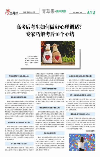 高考后考生如何做好心理调适?专家巧解考后10个心结