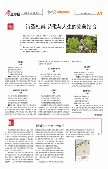 历史上伟大的诗人之一的杜甫,世人称其为“诗圣”,其诗被誉为“诗史”。 他所写之诗衔接了盛唐至中唐的过渡时期,从他个人经历乃至国家大义无一不体现出杜甫对人生抱负的变化和其忠君忧国的执念。杜甫所写之诗包含着生动的形象和热切的情怀,更有担忧的愁绪,展现了这个过渡时期的重大的变化。 鲁迅对杜甫的评价是:“杜甫似乎不是古人,就好像今天还活在我们堆里似的。”“杜甫是中华民族的脊梁!” 编者精选了杜甫诗作中的部分名篇,以飨读者。 《春望》 杜甫 国破山河在,城春草木深。 感时花溅泪,恨别鸟惊心。 烽火连三月,家书抵万金。 白头搔更短,浑欲不胜簪。 【赏析】这首诗反映了诗人热爱国家、眷念家人的美好情操,意脉贯通而不平直,情景兼具而不游离,感情强烈而不浅露,内容丰富而不芜杂,格律严谨而不板滞,以仄起仄落的五律正格,写得铿然作响,气度浑灏,因而一千二百余年来一直脍炙人口,历久不衰。 《闻官军收河南河北》 杜甫 剑外忽传收蓟北,初闻涕泪满衣裳。 却看妻子愁何在,漫卷诗书喜欲狂。 白日放歌须纵酒,青春作伴好还乡。 即从巴峡穿巫峡,便下襄阳向洛阳。 【赏析】这是一首叙事抒情诗,代宗广德元年(公元763年)春作于梓州。延续七年多的安史之乱,终于结束了。作者喜闻蓟北光复,想到可以挈眷还乡,喜极而泣,这种激情是人所共有的。全诗无半点掩饰,情真意切。读了这首诗,我们可以想象作者当时对着妻儿侃侃讲述捷报,手舞足蹈,惊喜欲狂的神态。有人称赞它是杜甫“生平第一首快诗”。 《江南逢李龟年》 杜甫 岐王宅里寻常见,崔九堂前几度闻。 正是江南好风景,落花时节又逢君。 【赏析】这是杜甫绝句中最有情韵、最富含蕴的一篇。只二十八字,却包含着丰富的时代生活内容。如果诗人当年围绕安史之乱的前前后后写一部回忆录,是不妨用它来题卷的。 《登高》 杜甫 风急天高猿啸哀,渚清沙白鸟飞回。 无边落木萧萧下,不尽长江滚滚来。 万里悲秋常作客,百年多病独登台。 艰难苦恨繁霜鬓,潦倒新停浊酒杯。 【赏析】古人有农历九月初九登高的习俗,这首诗就是唐代宗大历二年(公元767年)的重阳节时诗人登高抒怀之作。此时杜甫寓居长江畔的夔州(今四川省奉节县),患有严重的肺病,生活也很困顿。全诗通过对凄清的秋景的描写,抒发了诗人年迈多病、感时伤世和寄寓异乡的悲苦。 《赠花卿》 杜甫 锦城丝管日纷纷,半入江风半入云。 此曲只应天上有,人间能得几回闻。 【赏析】全诗四句,前两句对乐曲作具体形象的描绘,是实写;后两句以天上的仙乐相夸,是遐想。因实而虚,虚实相生,将乐曲的美妙赞誉到了极度。然而这仅仅是字面上的意思,其弦外之音是意味深长的。这可以从“天上”和“人间”两词看出端倪。 《旅夜书怀》 杜甫 细草微风岸,危樯独夜舟。 星垂平野阔,月涌大江流。 名岂文章著,官因老病休。 飘飘何所似,天地一沙鸥。 【赏析】这首诗既写旅途风情,更感伤老年多病,却仍然只能像沙鸥在天地间飘零。“名岂文章著”是反语,也许在诗人的内心,自认为还有宏大的政治抱负未能施展。 (图片源自网络)