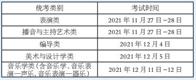 本报讯 近日,上海市教育考试院发布消息称,2022年上海市普通高校考试招生艺术类专业统一考试日程安排确定。具体考试时间为:表演类、播音与主持艺术类考试时间均为2021年11月27日-28日;编导类考试时间为2021年12月4日;美术与设计学类考试时间为2021年12月5日;音乐学类(含音乐学、音乐表演-声乐、音乐表演-器乐)考试时间为2021年12月11日-12日。