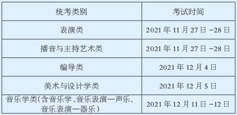 本报讯 近日,上海市教育考试院发布消息称,2022年上海市普通高校考试招生艺术类专业统一考试日程安排确定。具体考试时间为:表演类、播音与主持艺术类考试时间均为2021年11月27日-28日;编导类考试时间为2021年12月4日;美术与设计学类考试时间为2021年12月5日;音乐学类(含音乐学、音乐表演-声乐、音乐表演-器乐)考试时间为2021年12月11日-12日。