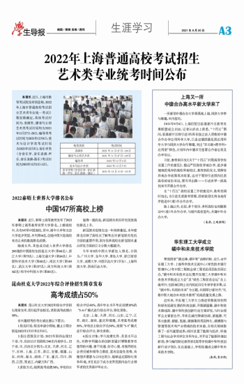 2022年上海普通高校考试招生 艺术类专业统考时间公布