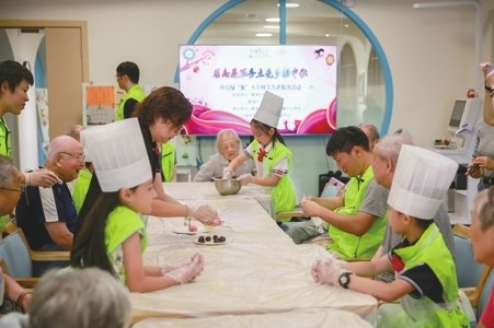记者 朱筱丽 在每个中国人心灵的河流上,总映照着一轮亘古不变的中秋之月。月朗风清,彰显的是人生境界;月饼如环,环环寄托着团圆之思。 “双减”后的第一个开学季,黄浦区教育学院附属中山学校大队部响应团市委号召,打造专属于中山少先队员们的“15分钟少先队社区幸福活动圈”,五里桥街道日间照护中心便是其中的一站。每逢传统佳节到来,都有他们的身影。值得一提的是,家校携手共育是中山的特色之一,鉴于中秋节团圆的象征,此次活动也邀请了部分家委会代表一同参与。在中秋节来临之际,大大小小的“绿聚人”志愿者们在学校大队部的组织下来到熟悉的老地方共赴这绵延千年的中秋约定。 在欣赏过队员代表带来的中秋节节目表演后,具有月饼制作相关背景的家委会代表向“绿聚人”及老人们示范做冰皮月饼的步骤,并讲解需要注意的事项。同学们与老人们通过亲手制作月饼的方式,感受协同配合的力量,增进老少的互动交流,边做边聊,感悟中华传统文化的博大精深。虽然都是第一次动手制作,但是同学们与老人们都特别认真投入。最后,在一起品尝过中山学校的特色月饼后,活动落下了帷幕,现场欢声笑语,气氛温馨和谐。 用志愿服务点亮多彩中秋,对传统文化的认同和传承是每一位中华儿女的责任。师生们与家委会代表纷纷表示,能够与社区的老人们共同迎接中秋节的到来,看到他们脸上绽开童年般的笑容,自己也感到异常的兴奋和欢乐。 校方表示,将有更多的中山少先队员参与到“15分钟少先队社区幸福活动圈”中来,这是未来更多次志愿服务的开始,看到社区的老人感受到亲情的温暖、社会的关爱,也进一步激发了孩子们从小树立尊老、爱老的优良品德,同时加强了对孩子们尊老爱老的传统美德教育,在孩子们的心中播下爱的种子!