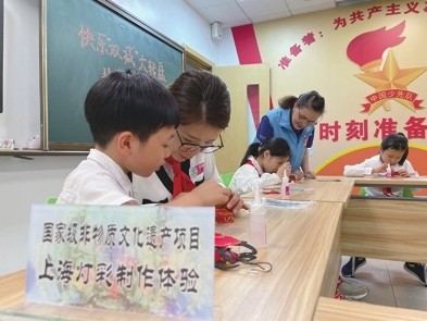 10月12日,“请党放心 强国有我”上海少先队庆祝建队72周年主题活动在黄浦区五里桥街道社区文化中心举行。活动中,发布了“15分钟幸福圈”活动菜单,51个中小学和社区被授予“少先队幸福教育实验校和实验社区”牌,中福会少年宫等3家校外活动场所成立了大队委员会,14家区级校外少工委被授牌,标志着助力少先队员“双减”后幸福童年的上海少先队幸福教育正式启动。 记者 曹莹 摄影报道 校外建队:夯实少先队幸福教育组织基础 日前,共青团中央等13部门联合印发《关于构建新时代少先队社会化工作体系的实施意见》,文件明确要加强青少年宫等校外活动场所少先队组织建设。 经过前期酝酿推动,在建队节上,市少工委为中福会少年宫、市青少年活动中心等14家区级校外少工委授牌。建队范围覆盖市区两级青少年宫、学生活动中心、青少年活动中心等。 其实,市少工委在校外建队的探索早已展开。5月30日,少先队上海小荧星艺术团大队委员会就已成立,这也是上海成立的首个校外少年儿童艺术团体少先队组织。大队推出的小荧星“空中10分钟队会”栏目通过不同的党史学习主题,以自主性的问题探索为方式,带领全市少先队员探索革命故事,学习革命精神,传承红色基因。 活动菜单:少先队幸福教育进社区 记者在市少工委面向社区发布的“15分钟幸福圈”活动菜单上看到,菜单包括了“红领巾巡讲团”示范活动、“百年百章”红领巾红色研学导览、学校共青团助力“双减”少先队活动、雏鹰杯“国学达人”诗人之路系列讲座和小荧星“空中10分钟队会”等五类,涉及党史教育、传统文化等内容。据悉,市少工委将活动以“点单”的方式送进社区,让“15分钟幸福圈”活起来,让社区内的队员们动起来,多维度丰富队员们“双减”后的幸福生活。 幸福转盘:队员轮流做队长、家长志愿辅导 五里桥街道社区文化活动中心2楼有一间充满少先队元素的队室,10月12日放学后,瞿溪路小学8名少先队员在这里参与“上海灯彩”为特色的非遗传承主题活动,聆听彩灯故事,体验制作彩灯。康德学校的少先队员则在1楼小花园的Wuli自治小农场忙开了,在听了校外辅导员教导如何种植后,他们播种起卷心菜种子。少儿绘画创作区里,师专附小的少先队员 画起了“五里十景”,了解景点背后的红色历史故事。趣味体育运动区有个小型篮球场,一场花式篮球开打了。 康德学校九年级王安婕第一次尝试亲自种植,真真实实地感受到了“锄禾日当午,汗滴禾下土”的艰辛;而邬雨晗则表示,这番农场劳作,给自己繁忙的学习生活,带来了放松和休闲。 “双减”后,这个社区文化中心俨然成为少先队员填补课余生活的欢乐场,而维护秩序、提供帮助的志愿者辅导员大多是队员家长。这也是市少工委向全市推广幸福“双减”大转盘模式的一种形式。 校社联动:少先队幸福教育形成合力 建队节上,市少工委启动了上海市少先队幸福教育实验计划,该计划分为实验校和实验社区,旨在全市范围推动校社联动,用幸福教育架起学校和社区的桥梁。 如一师附小和曹家渡街道合作,依托街道丰富的教育资源,鼓励队员在社区中跨中队,跨年级,在小区楼宇内成立混龄中小队;复兴东路第三小学则通过幸福科技课程、幸福科技活动以及幸福科技场馆,分阶段开展少先队幸福教育,开发家庭、学校和社区三维争章体系;华师大闵行永德实验小学组建爸妈红领巾巡讲团,充分发挥家长的主观能动性,助力“双减”后的课余生活;另有长青学校、东门中学等学校,通过开展“打卡家乡红色地标”等活动,引导队员走出校门、走进社区,了解家乡新变化。 市少工委主任、市少先队总辅导员赵国强表示,要创新首发活动,形成一队一品,发挥头雁效应,丰富少先队员“双减”后的课余生活,推动少先队幸福教育在全市范围内蓬勃发展。