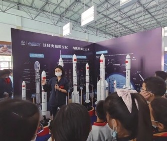 记者 曹莹 近日,闵行区实验小学畹町校区羽毛球馆俨然一个航天展览馆,室内被布置成了五大展区和一个观影区。五大展区里不仅陈列着一系列航天模型,更有真正的火箭残骸;观影区里循环播放着我国航天发展历程的视频。原来,这是实验小学“漫游太空、畅想未来”自然学科系列活动之“航天巡展进校园”活动。 为了让自然学科活动开展得更有意义,实验小学邀请了专业公司带上展品前来学校布展。一校四区4500多名学生走进展馆,分别走进“中国航天史”“长征火箭区”“卫星区”“载人航天区”“深空探测区”,一边观看展品,一边聆听专业讲解员的介绍。大家被眼前的“大国重器”深深吸引,自豪之情油然而生。 为了让同学们对航天知识有一定的了解,该校还邀请了上海航天宇航系统工程研究所和上海航天电子技术研究所的6位研究员,走进4个校区为同学们做航天科普讲座。亲切的语言、生动的事例,让同学们了解了载人航天、空间站的发展历史,听到了关于月球探测以及航天员的故事。 莘松小区五年级的学生朱子悦说,“看了这次展览,我学到了许多知识:原来火箭上天时会脱落一些用于推进的组件,我知道了宇航员在太空看到的地球的样子……航天知识真是神秘且有魅力啊!”春城校区四年级的孙笑语也表示,返回舱模型让其留下了深刻的印象,希望以后还有这样精彩的参观活动。