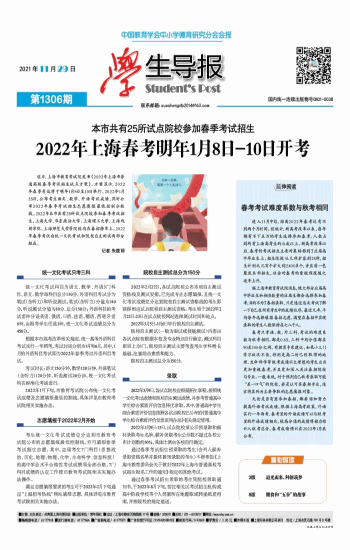 近日,上海市教育考试院发布《2022年上海市普通高校春季考试招生试点方案》。方案显示,2022年春季考试将于明年1月8日至10日举行。2022年1月25日,公布考生语文、数学、外语考试成绩,同时公布2022年春季考试招生志愿填报最低控制分数线。2022年本市共有25所试点院校参加春季考试招生,上海大学、华东政法大学、上海理工大学、上海戏剧学院、上海师范大学等院校均在春招榜单上。2022年春季考试由统一文化考试和院校自主测试两部分组成。 记者 朱筱丽 统一文化考试只考三科 统一文化考试科目为语文、数学、外语3门科目。语文、数学每科目总分150分。外语科目考试分为笔试(含听力)和听说测试,笔试(含听力)分值为140分,听说测试分值为10分,总分150分;外语科目的考试语种分设英语、俄语、日语、法语、德语、西班牙语6种,由报考学生任选1种。统一文化考试成绩总分为450分。 根据本市高考改革相关规定,统一高考外语科目考试实行一年两考,考试时间分别为1月和6月。其中,1月的外语科目考试即为2022年春季考试外语科目考试。 考试时长:语文150分钟,数学120分钟,外语笔试(含听力)120分钟、听说测试20分钟。统一文化考试均在标准化考场进行。 2022年1月下旬,市教育考试院公布统一文化考试成绩及志愿填报最低控制线,具体详见市教育考试院相关实施办法。 志愿填报于2022年2月开始 考生统一文化考试成绩总分达到市教育考试院公布的志愿填报最低控制线,方可填报春季考试招生志愿。其中,应届考生7门科目(思想政治、历史、地理、物理、化学、生命科学、信息科技)的高中学业水平合格性考试成绩须全部合格。7门科目成绩的认定工作按市教育考试院相关实施办法操作。 满足志愿填报要求的考生可于2022年2月下旬通过“上海招考热线”网站填报志愿, 具体详见市教育考试院相关实施办法。 院校自主测试总分为150分 2022年2月22日,各试点院校公布本校自主测试资格线及测试安排。已完成专业志愿填报,且统一文化考试成绩总分达到院校自主测试资格线的考生即获得相应试点院校自主测试资格。考生须于2022年2月22日-23日在试点院校网站选择测试时间和地点。 2022年3月5日-3月6日举行院校自主测试。 院校自主测试(一般为面试或技能测试)内容由各试点院校根据本校及专业特点自行确定,测试科目原则上为1门。院校自主测试主要考查考生学科特长基础,注重综合素质和能力。 院校自主测试总分为150分。 录取 2022年3月9日,各试点院校应根据招生章程,按照统一文化考试成绩和院校自主测试成绩,并参考普通高中学生综合素质评价信息择优录取。其中,普通高中学生综合素质评价信息按照各试点院校已公布的《普通高中学生综合素质评价信息使用办法》有关规定使用。 2022年3月9日-15日,试点院校须公示预录取和候补录取考生名单,候补录取考生公示数不超过各校公布计划数的50%,具体比例由各校自行确定。 通过春季考试招生预录取的考生(含列入候补录取资格名单并最终被预录取的考生)不得参加《上海市教育委员会关于做好2022年上海市普通高校考试招生报名工作的通知》规定的其他考试。 通过春季考试招生录取的考生凭院校录取通知书,于2022年8月下旬,前往相关区考试招生机构或高中阶段学校等个人档案所在地提取或转递纸质档案,并按院校的规定递送。 延伸阅读 春考考试难度系数与秋考相同 进入11月中旬,距离2022年春考还有不到两个月时间。经统计,新高考改革以来,每年都有不下五万的考生选择参加春考,人数占到所有上海高考生的七成以上。新高考改革以后,春考的考试招生主要对象转移到了应届高中毕业生上,招生院校从几所扩容到25所,招生计划从几百个扩大到2400多个,并且清一色聚焦本科招生,社会对春考的重视程度随之逐年上升。 据上海市教育考试院消息,绝大部分应届高中毕业生和相当数量的往届生都会选择参加春考。目的不为了春招录取,只是通过这次考试了解一下自己在所有考生中的成绩位序。最近几年,平均每年选择填报春招志愿、渴望在春招中实现录取的考生人数保持在七八千人。 春考只考语、数、外三科,考试的难度系数与秋考相同,都是0.65,三科平均分值都在90至100分之间。有教育专家建议,如果小三门学习状况不佳,特别是高二时已经取得的地理、生命科学等级考成绩不太理想的考生应当更加重视春考,并且更加深入关注春招院校与专业。一般来说,对于预判自己秋考录取可能“差一口气”的院校,若是认可其春招专业,适宜将其列为主要争取的志愿填报对象。 无论是否有意参加春招,都要倍加努力提高外语考试成绩。根据上海高考政策,外语实行一年两考,春考里的外语成绩可以与秋考里的外语成绩相比,较高分值的成绩将被自动计入秋考总分。春考成绩预计在2022年1月底公布。