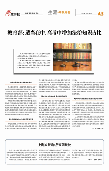 教育部:适当在中、高考中增加法治知识占比