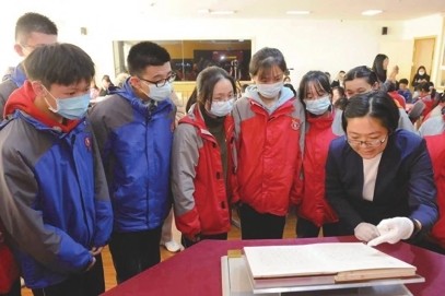 记者 刘昕璐 文 吴恺 图 中共一大纪念馆收藏着一批书信,这是党的一位地下工作者写给家人的。这些信的主人,就是电影《永不消逝的电波》中舍生取义的共产党员“李侠”的人物原型——李白烈士。 近日,中共一大纪念馆带着李白烈士的17封家书走进了位于虹口区的上海财经大学附属北郊高级中学,为同学们呈现文物背后“家书抵万金”的感人故事。 李白在抗日战争到解放战争期间写的17封书信,分别是写给他的父母、兄弟,以及岳父岳母的。作为一名专业无线电技术人员,李白长期在上海从事秘密发报工作,不能与父母兄弟团聚,他又非常挂念家中老人的身体,只能通过书信的形式,把对亲人的思念和关怀注入笔端。 这些家书,深埋着李白对家人的思念与眷恋,以及为了革命事业无法侍奉双亲的歉疚之情。英烈铁骨柔情的一面,忠于国家、孝顺父母、热爱家庭的品德,悉数展现。 同学们走上前近距离观看文物,沉浸式感受文物背后的故事和传递的精神力量。“这次的课堂因文物的加入变得生动而又深刻,也让我明白了,正是由于无数先烈在生死存亡的危急关头挺身而出,舍家忘我,以天下为己任,挽狂澜于既倒,扶大厦之将倾,才有如今祖国富强人民幸福安康的新时代。作为当代青年,我们要致敬革命先辈,铭记革命精神,更要以家书为镜,从中汲取奋发向上的力量。”北郊高级中学高二年级的高兴同学说道。
