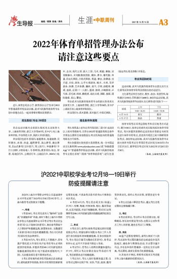 沪2021中职校学业考12月18—19日举行防疫提醒请注意