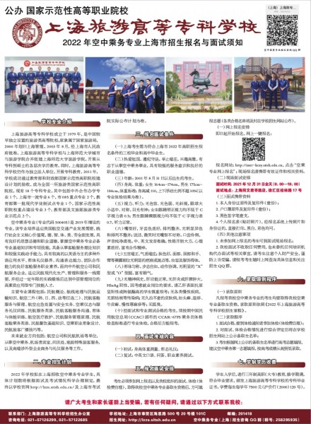 2022年空中乘务专业上海市招生报名与面试须知
