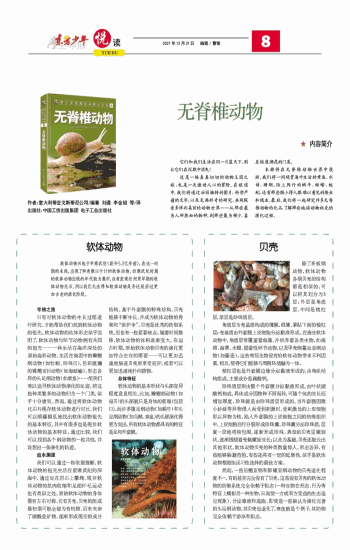 作者:意大利蒂亚戈斯蒂尼公司/编著 刘通 李金韬 等/译 出版社:中国工信出版集团 电子工业出版社 ★ 内容简介 它们和我们生活在同一片蓝天下,别让它们在沉默中消失! 这是一场真真切切的动物王国之旅,也是一次激动人心的冒险。在旅途中,我们将通过壮丽独特的图片、科学严谨的文字,以及充满好奇的研究,共同探索多样而美丽的动物世界——从那些最为人所熟知的物种,到那些最为稀少,甚至极度濒危的门类。 本册将在无脊椎动物世界中漫游。我们将一同观赏海中生活的章鱼、水母、珊瑚,陆上爬行的蜗牛、蛞蝓、蚯蚓,还有那些微小得人眼难以看见的绦虫和线虫。最后,我们将一起研究许多无脊椎动物的化石,了解那些地球动物祖先的演化过程。 软体动物 软体动物兴起于早寒武世(距今5.3亿年前),在这一时期的末段,出现了种类数以千计的软体动物。但寒武纪时期的软体动物出现的年代较为集中,没有发现任何更早期的软体动物化石,所以我们无法得知软体动物是否还经历过更加古老的演化阶段。 寻根之旅 只有对软体动物的生长过程进行研究,才能帮助我们找到软体动物的祖先。软体动物的幼体形态似乎说明了,软体动物与环节动物拥有共同的祖先——一种生活在海洋深处的原始扁形动物。生活在海泥中的瓣鳃纲动物(如牡蛎、珍珠贝),色彩斑斓的裸鳃亚目动物(如海蛞蝓),形态各异的头足纲动物(如章鱼)……使我们难以追寻软体动物演化的足迹。将这些种类繁多的动物归为一个门类,似乎十分唐突。然而,通过将软体动物化石与现存软体动物进行对比,我们可以顺藤摸瓜地找出软体动物祖先的基本特征,其中有很多也是现存软体动物的基本特征。通过比较,我们可以找到各个纲动物的一些共性,并设想出一条演化的轨迹。 追本溯源 我们可以通过一些依据推断,软体动物的祖先生活在前寒武纪的深海中,通过足在岩石上攀爬,现存软体动物的肌肉收缩和足部纤毛运动也有类似之处。原始软体动物的身体器官左右对称,长有贝壳,贝壳的组成最初很可能全部为有机物,后来夹杂了碳酸盐矿物,逐渐形成现在的成分结构。基于外套膜的特殊结构,贝壳能够不断生长,并成为软体动物的骨架和“保护伞”。贝壳是优秀的防御系统,但也有一些显著缺点。随着时间推移,软体动物的体积逐渐变大。在远古时期,原始软体动物贝壳的演化更加符合生存的需要——可以更加迅速地躲进贝壳里享受庇护,或者可以更加迅速地扑向猎物。 总体特征 软体动物的基本形状与头部变异程度息息相关,比如,瓣鳃纲动物(如扇贝)的头部就只是身体的前端(包括口),而许多腹足纲动物(如蜗牛)和头足纲动物(如乌贼、章鱼)的头部演化得更为突出。所有软体动物都具有的特征是足和外套膜。 贝壳 除了多板纲动物,软体动物各纲贝壳的结构都是相似的,可以将其划分为3层:外层是角质层,中间是棱柱层,里层是珍珠质层。 角质层为壳基质构成的薄膜,很薄,紧贴下面的棱柱层;壳基质由外套膜上皮细胞分泌黏液形成。在海生软体动物中,角质层常覆盖着海藻,并供养着各类生物,如海绵、海葵、水螅、固着性环节动物,以及甲壳纲蔓足亚纲动物(如藤壶)。这些寄居生物没有给软体动物带来不利因素,相反,使得它们能够与周围环境融为一体。 棱柱层也是外套膜边缘分泌黏液形成的,由角状结构组成,主要成分是碳酸钙。 珍珠质层则由整个外套膜分泌黏液形成,由叶状碳酸钙构成,具体成分因物种不同而异,可随个体的生长而增加厚度。珍珠就是由珍珠质层形成的。当外套膜因微小砂砾等异物侵入而受到刺激时,受刺激处的上皮细胞即以异物为核,陷入外套膜的上皮细胞之间的结缔组织中,上皮细胞自行分裂形成珍珠囊,珍珠囊分泌珍珠质,层复一层地将核包围,逐渐形成珍珠。典型的贝壳呈螺旋状,逐渐围绕着壳轴螺旋生长;以此为基础,贝壳还能长出其他形状。软体动物贝壳的种类数量惊人,形态各异,有些能够躲避危险,有些还具有一定的延展性,似乎是软体动物根据生活习性选择的最佳方案。 然而,一些后鳃亚纲和肺螺亚纲动物的贝壳退化程度不一,有的甚至完全没有了贝壳。这些没有贝壳的软体动物的防御系统完全依赖于拟态(一种生物在形态、行为等特征上模拟另一种生物,从而使一方或双方受益的生态适应现象)、分泌毒液和逃跑。即使是一些被认为演化完善的头足纲动物,其贝壳也退化了,章鱼就是个例子,其防御完全依赖于游泳和拟态。