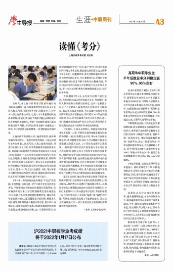 沪2021中职校学业考成绩将于2022年1月17日公布
