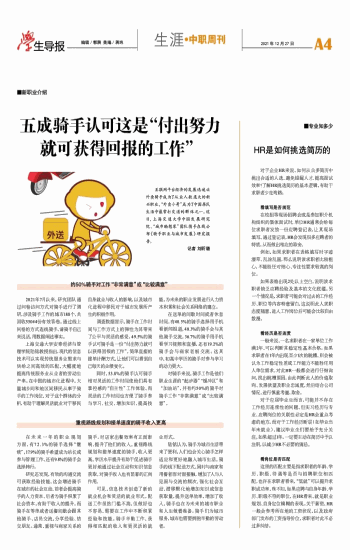 五成骑手认可这是“付出努力就可获得回报的工作”