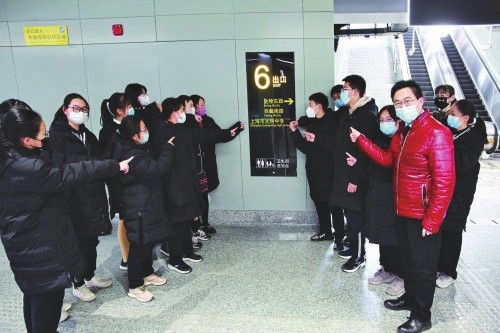 去年年底,上海轨道交通14号线、18号线一期北段开通运营,上海轨道交通全网络运营里程增至831公里,网络规模继续领跑全球。对上海市光明中学的学生们来说,新开通的14号线堪称是一条“校门口的地铁”——大世界站6号出口距离学校仅10米!而更让学生们欣喜和激动的是,他们两个月前思政课上提出的在6号口指示标识中增加“上海市光明中学”字样的建议被地铁方面采纳了! 记者 刘春霞 地铁工地旁的一节思政课 去年9月开学之初,光明中学的师生们发现,距离校门口咫尺之遥有个地铁施工工地。得知这将是地铁14号线的一个出口时,赵程斌老师将思政课堂搬到了工地旁,让同学们实地测量这个出口到学校的距离。 “在同学们的惊叹声中,我们发现,这个地铁出口距离学校仅有短短十米。如此近的距离,同学们笑称是‘地铁口的好学校’。于是,我们萌生了一个想法:能否在轨交14号线地铁出口,标识上光明中学的名字?”高一(4)班的张晓宇同学说,通过调查,大家撰写了可行性分析报告,怀揣着期待和憧憬写下了“致申通地铁的一封信”。 收到学生们的建议后,申通地铁方面很重视,根据实地调研,最终申通地铁四分公司采纳了建议,正式在14号线6号出口处标识了“西藏南路、金陵东路、上海市光明中学”字样。 “我们的意见被采纳了!每一个同学的心里都是兴奋且满怀感激的。回想大家测量、提议、调研、写信的过程,也是一个群策群力、集思广益的过程,每个人都从中感受到一种主人翁精神,受益匪浅。”张晓宇同学说。 情境化教学让思政课不再枯燥 近日,赵程斌老师又带领高一(4)班的同学们上了一节思政课:《习近平新时代中国特色社会主义思想学生读本》(高中)——新发展理念下的城市轨交。 赵程斌老师介绍说,无论是思政课的统编教材还是“读本”,“新发展理念”和“以人民为中心的发展思想”都是非常重要的内容。“这部分内容平时上课时还是比较枯燥的,所举的例子与学生有一定距离感,但如果结合14号线的开通来阐述,就变得很生动,因为这是发生在他们身边的、他们亲自去实践过的,是最鲜活的例子。”在赵程斌老师看来,新发展理念的协调、创新、绿色、开放、共享五大内涵,在地铁14号线上体现得淋漓尽致。 光明中学校长朱晓薇认为,在飞速发展的时代,学生的学习一定是不光学课本,在学习过程中,视野要从校内辐射到校外,“要有更大的视野和更高的格局,才能真正为将来踏上社会做好准备。我们希望有更多学生有这样的‘金点子’,然后转化为学校发展的‘金钥匙’,进而能够看到‘金果实’,所以我们也愿意倾听更多学生提出好的建议。”