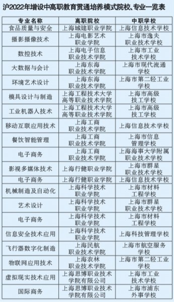 据市教委信息,经学校申报、专家评议及市教委核定,同意2022年增设上海城建职业学院与上海信息技术学校申报的食品质量与安全等20个中高职教育贯通培养模式专业。学生学籍管理和收费标准按相应规定执行,前三年按中职校有关规定管理,高职阶段按高职院校有关规定管理。