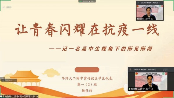 举办主题活动、在方舱中入团、做社区志愿者……在中国共产主义青年团成立100周年之际,上海的中学生以实际行动唱响新时代的青春之歌,坚定了新时代青年永远跟党走的信念。记者 刘昕璐 郭漪 青春力量无处不在 在中国共产主义青年团成立100周年之际,华东师范大学孟宪承书院团委和华师大二附中附属初中团委联合举办建团百年“五四”主题活动,通过讲述青春战疫故事、发布青春战疫倡议、投身青春战疫行动,凝聚大中学校育人合力,共同上好“抗疫”这堂大思政课。 鲍佳炜是华师大二附中高一学生,疫情期间,他用视频和公众号等方式,记录下自己的所见所闻。他通过对防疫先进事例的线上宣传,向身边同学传递抗疫积极信念,号召团员青年们在关键时期更添判断力、感恩心、自控力。 作为华东师范大学服务上海抗疫人员子女线上“云辅导”志愿者的一员,孟宪承书院2020级数学专业的杨瑞同学分享起自己作为“云陪伴”志愿者与抗疫家庭孩子相处的暖心经历。“陪伴学习一线牵”,很多像杨瑞一样的未来人民教师通过“云陪伴”,与战疫家庭子女一起度过这段特殊时光,为疫情防控树立牢固的后方防线。 此时,身处封闭的华师大校园,更是有大量的“大白”“小蓝”青年志愿者正在为校园防疫默默付出。门岗、楼层长、志愿者,青春的力量无处不在。 在主题活动最后,孟宪承书院2019级物理专业刘文慧同学、华师大二附中高一(2)班鲍佳炜作为代表向两校团员青年,联合发布青春战疫倡议:“团员青年们以更加坚决的态度、更加自觉的行动投身社会面清零攻坚,一鼓作气、决战冲锋,为早日打赢疫情防控攻坚战贡献青春力量,让青春在抗疫大局中闪闪发光!” 这份倡议既是对团员青年们的祝福希冀又是对大家的指引勉励,希望可以不断激励更多团员青年,做学习生活的“自律派”,带头严于律己,扎实完成学习任务;做疫情防控的“先锋派”,亮明团员身份,投身社区学校志愿服务;做抗击病毒“乐观派”,点赞战疫榜样,坚定清零攻坚战必胜决心!值此中国共产主义青年团成立百年之际,凝聚华师大和华二附的团员青年力量,向共青团致礼。 方舱中入团永生难忘 这个五一假期,对吴淞中学高一(5)班的余子瞻同学来说既特别又难忘——特别的是因不幸感染新冠肺炎病毒他入住了方舱,难忘的是他在方舱里庄严宣誓成为了一名共青团员。 “今年是建团一百周年,在此期间入团,既是一种莫大的荣耀,又彰显了一种历史的厚重与责任。尽管在方舱中,我也应该奋力拼搏,努力成为一名优秀的共青团员。”余子瞻说。 据了解,在抗击疫情的特殊时期,吴淞中学团委落实从严治团要求,严格落实“入团十步曲”,本期团校除了团的基础课程之外,还开展了“青•学”主题团课。为了让新团员感受入团的神圣庄严,吴淞中学团委特别为新团员们举行了线上入团仪式。 在庄严的入团宣誓后,余子瞻同学作为新团员代表在方舱中做了发言。他表示,此次入团仪式对他来说特别难忘,“在方舱中与病毒赛跑时,我看到社区、保供、方舱里处处都有优秀青年的身影,团旗始终在抗疫一线飘扬。” 在五四青年节之际,吴淞中学的团员青年们也纷纷以实际行动表明自己向团组织靠拢的决心。各个支部在假期里热学热议《新时代的中国青年》白皮书以及习近平总书记在中国人民大学考察讲话精神。高一(1)班顾江楠同学说,回望新中国成立前的漫漫长夜里,李大钊先生高举火炬,在中国播下了马克思主义的火种,将短暂的一生倾注到建立“青春中国”的革命伟业中。而现在,新时代青年更应该不畏难,不惧苦,危难之中显精神,关键时刻见真章。 在志愿服务中成长 今年的五四青年节是一个特殊的节日,所有的青年都直接或间接地奋战在抗疫一线。晋元学子不仅在课堂上求知若渴,还不忘课后在社区当起“大白小蓝”,服务他人。在抗疫一线担当作为,无畏向前,彰显出“初生牛犊不怕虎”的干劲闯劲、“一代更比一代强”的蓬勃朝气。 晋元中学高三(6)班吴玥同学春考录取后就积极投身于社区志愿者工作,他和妈妈一起,在核酸采样现场引导居民有序排队,帮助老年人进行核酸码登记,分发抗原自测盒及蔬菜等保供物资到居民家中……尽己所能地为防控疫情贡献力量,为居民们尽早恢复正常生活保驾护航。 高一(5)班高亦杨同学网课之余在社区做了志愿者,主要负责为小区居民发放抗原试剂和信息统计工作。他发现,要做好一个志愿者,不但要有责任心和担当,做事情还要有细心和耐心,才能更好地为社区居民服务。 同班的谢浩翔同学表示,他是社区众多志愿者中的一个,这次经历能够激励他将来更好地为他人服务。