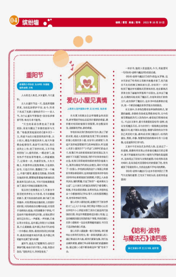 徐汇实验小学 五(3)中队 赵轩悦 一本好书,能使人受益匪浅,今天,我就要写一写《哈利·波特与魔法师》的读后感。 《哈利·波特与魔法石》的作者是J.K.罗琳。这本书讲述了哈利的父母被伏地魔杀害了,他只能在不友好的姨父姨妈家生活。在哈利十一岁时收到了魔法学校霍格沃茨寄来的信,他在霍格沃茨里交到了赫敏和罗恩两个好朋友,还学会了魔法,但偶然间他发现了魔法石,在他和朋友们的努力下,成功保护了魔法石。这本书中的故事跌宕起伏,使一个鲜活的魔法世界浮现在我的眼前。 在文章中,许多角色都有各种独特的特点。智慧的赫敏,贪婪的奇洛或是勇敢的哈利,文中的描写都能把我代入到角色中,感受他们情绪的变化。不过在文章中,最令我喜爱的是哈利·波特。他在发现魔法石后,在与伙伴们一同推测出谁想偷魔法石时,能不顾生命危险,靠着与同伴的合作和自己灵活的大脑,最终成功保卫魔法石。哈利的善良、勇敢、冷静、智慧和团结的精神令我十分敬佩,也是值得我们学习的。 文章中不仅有各式各样的人物,还表达了一些道理。就像哈利在阻止奇洛偷走魔法石的过程中,离不开赫敏的知识和小聪明与罗恩的高超棋术,这体现出了团结与友情的重要;当哈利和奇洛对峙时,是母亲临死前留给哈利的爱救了他,使我感到了母爱的伟大,当然这也离不开哈利的勇敢。 《哈利·波特与魔法石》这本书使我明白了勇气与友情的重要。它充实了我的生活,也使我受益匪浅!
