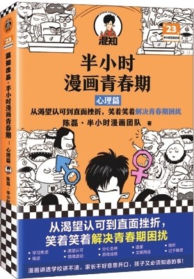 ● 作者:陈磊·半小时漫画团队 ● 出品方:读客文化 ● 内容简介: 通过手绘漫画的形式,陈磊(混子哥)及其半小时漫画团队为青少年读者讲解学校讲不清,父母不好意思开口,只能自己偷偷学的心理常识。 焦虑是因为我们大脑里分辨危险的器官还没发育完全;渴望认可是人类自古以来就有的求生本能;直面挫折有身体里的加油小分队,但也要自我调节;分心是大脑皮层在交替工作;易怒是因为某些情绪控制的“信号闸”没加工好;追星是我们在青春期里对未来的两种思考;上瘾是因为我们的大脑在渴望多巴胺;说脏话其实是一种情绪释放的调节机制…… 不讲枯燥的艰深理论,没有烦人的教条规矩,看青春期如何从跌跌撞撞走向顺利成长,青春不迷茫,成长不困扰。爆笑漫画讲清青春期心理常识,了解青春期的心理变化。