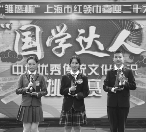 “南陈北李相约建党,主编白话文刊物《新青年》……”根据线索说出人名。“毛泽东同志所作的某首七言律诗其中一联,这首诗表达了解放全中国的必胜信念……”根据线索说出一联诗。 这些题目出现在2022“雏鹰杯”上海市红领巾喜迎二十大——“国学达人”中华优秀传统文化知识挑战赛中,赛事从传承中华优秀传统文化入手,用润物无声的方式实现少年儿童政治启蒙。 记者 周胜洁 记者 吴恺 摄 “人”字飞花令来回近10个回合 此次“国学达人”中华优秀传统文化知识挑战赛共设有“你说我猜”“博闻强识”“火眼金睛”“荣耀巅峰赛”四轮比赛。“你说我猜”是小学组和初中组选手混龄两两组队,答对题目最多的前三组晋级,其余选手通过“博闻强识”复活赛争夺晋级名额。 最精彩的是最后一轮“荣耀巅峰赛”。初中组进行“飞花令”,关键字不仅有家国情怀的“国”,更有人民的“人”字,“习近平总书记曾在上海杨浦滨江察看浦江两岸风貌时指出:城市是人民的城市,人民城市为人民。飞花令最后一轮关键字是‘人’。”当主持人报出题目后,“白云生处有人家”“人间正道是沧桑”“夕阳西下,断肠人在天涯”“人面桃花相映红”……张黛伶和陈译睿两位初三选手你来我往,对招了近10个回合,张黛伶赢得了最后的胜利。 弘扬传统文化,展现幸福风貌 本次活动旨在让更多青少年学中华优秀传统文化、爱中华优秀传统文化、用中华优秀传统文化,在亲身参与中,提升文化自信和认同,通过推进中华优秀传统文化创造性转化、创新性发展,引领、培养能够担当民族复兴大任的时代新人,以实际行动迎接党的二十大胜利召开。 为了让大赛覆盖更多中小学生,在初期的网络海选阶段不设门槛,吸引了超过38万名中小学生参与答题,最终站上决赛舞台的12位国学小达人就是从中脱颖而出的。 同济大学教授、诗学研究中心主任、博士生导师刘强,复旦五浦汇实验学校校长、上海复旦附中特级教师、上海诗词学会理事黄玉峰,华东师范大学副教授、中国语言文学系汉语言文字学研究生导师曹洁“坐镇”决赛现场,解读“天若有情天亦老”背后的故事,出题飞花令关键字“国”,解释家国情怀,以答疑解惑的形式,让更多人了解国学知识。 市少工委主任、市少先队总辅导员赵国强表示,“国学达人”挑战赛是上海少先队开展年份最长的“雏鹰杯”课外竞赛活动,每年都受到广大少先队员和家长们的热情支持和参与,今年又成为了“喜迎二十大 争做好队员”的重要活动之一。赛事不仅弘扬了中华优秀传统文化,还激励了新时代少年从历史长河中汲取智慧和力量,展现了少先队员们以我所能为祖国、为家乡、为集体尽责任的幸福风貌。 》》冠军风采 小学组冠军杨凌瑆:在围棋中学习古诗词 六名晋级决赛的小学组选手中,上海市普陀区新普陀小学东校的杨凌瑆年纪最小,四年级的她一路过关斩将,并在最后一轮“一战到底”赛制中,杨凌瑆一战回答到第20题,对手答错第21题,她成为了小学组的冠军。这是杨凌瑆获得的第一座冠军奖杯,特别惊喜,“以前写作文表现紧张,会描写心里像揣着一只兔子,心快蹦出来了,这次我体会到了。” 幼儿园大班时,杨凌瑆学起了围棋,又由于记性好,小学开启了传统文化的学习之路。说起最喜欢的诗人,杨凌瑆说了“诗仙”李白的名字,“我喜欢李白的豪迈和豪爽,最喜欢他的《将进酒》,他和岑夫子、丹丘生一起喝酒,非常幽默地说‘请君为我倾耳听’,也喜欢‘人生得意须尽欢,莫使金樽空对月’。” 平时,杨凌瑆的书包里常会放一本和古诗词有关的书,她想多了解中国文化,做一名有文化的好少年。“学习就要找到自己最喜欢的那一项,比如最喜欢杜甫,就可以想象跟随杜甫的脚步学习传统文化。”杨凌瑆说。